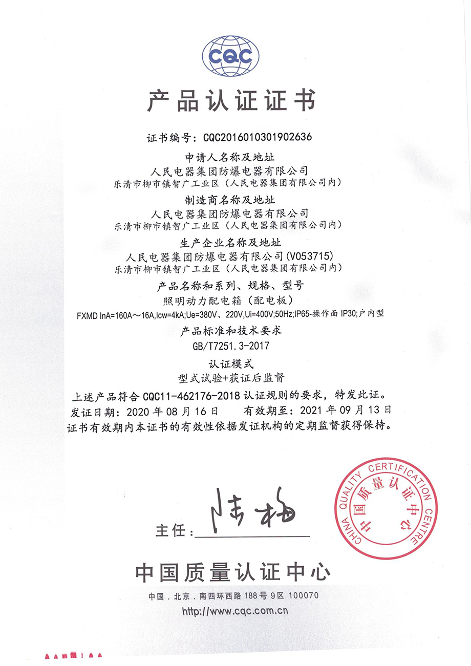 照明動力配電箱(配電板)FXMD (證書編號:CQC2016010301902636)(點(diǎn)擊下載)