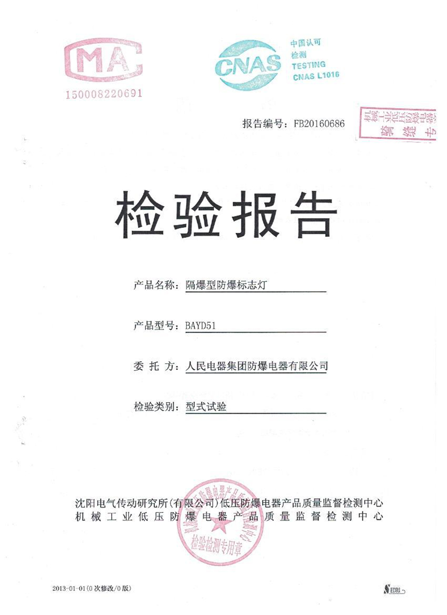 檢驗(yàn)報(bào)告:BAYD51隔爆型防爆標(biāo)志燈(型式試驗(yàn))(點(diǎn)擊下載)