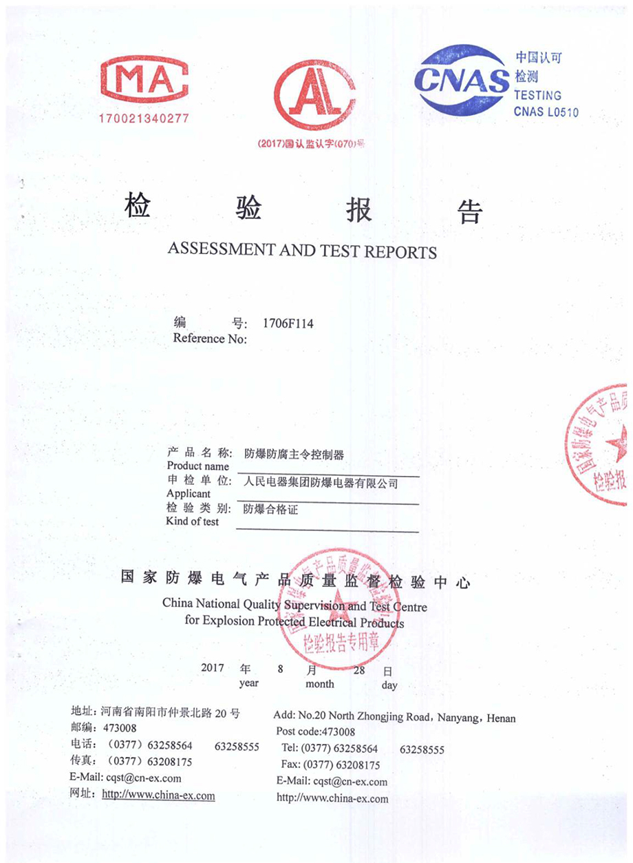 檢驗報告:BZA8030防爆防腐主令控制器(防爆合格證)(點擊下載)