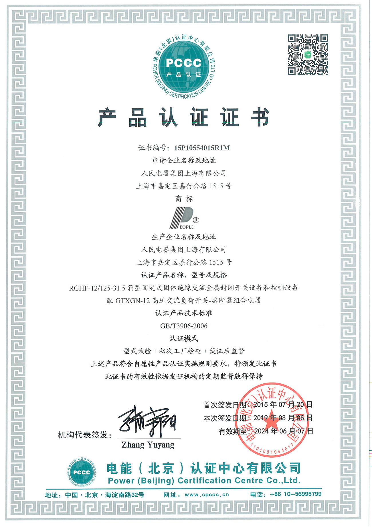 產(chǎn)品認(rèn)證證書(shū):RGHF-12/125-31.5箱型固定式固體絕緣交流金屬封閉開(kāi)關(guān)設(shè)備和控制設(shè)備配GTXGN-12高壓交流負(fù)荷開(kāi)關(guān)-熔斷器組合開(kāi)關(guān)(點(diǎn)擊下載)