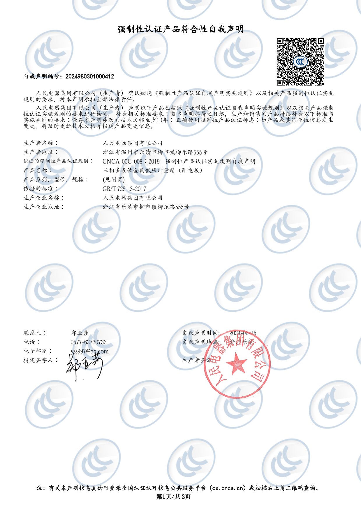 自我聲明認(rèn)證:BXS3三相多表位金屬低壓計(jì)量箱(配電板)(編號(hào):2024980301000412)(點(diǎn)擊下載)