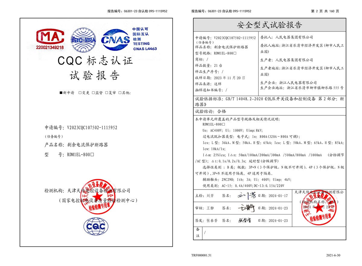 CQC試驗(yàn)報(bào)告(202401):RDM1EL-800□剩余電流動(dòng)作斷路器(點(diǎn)擊下載)
