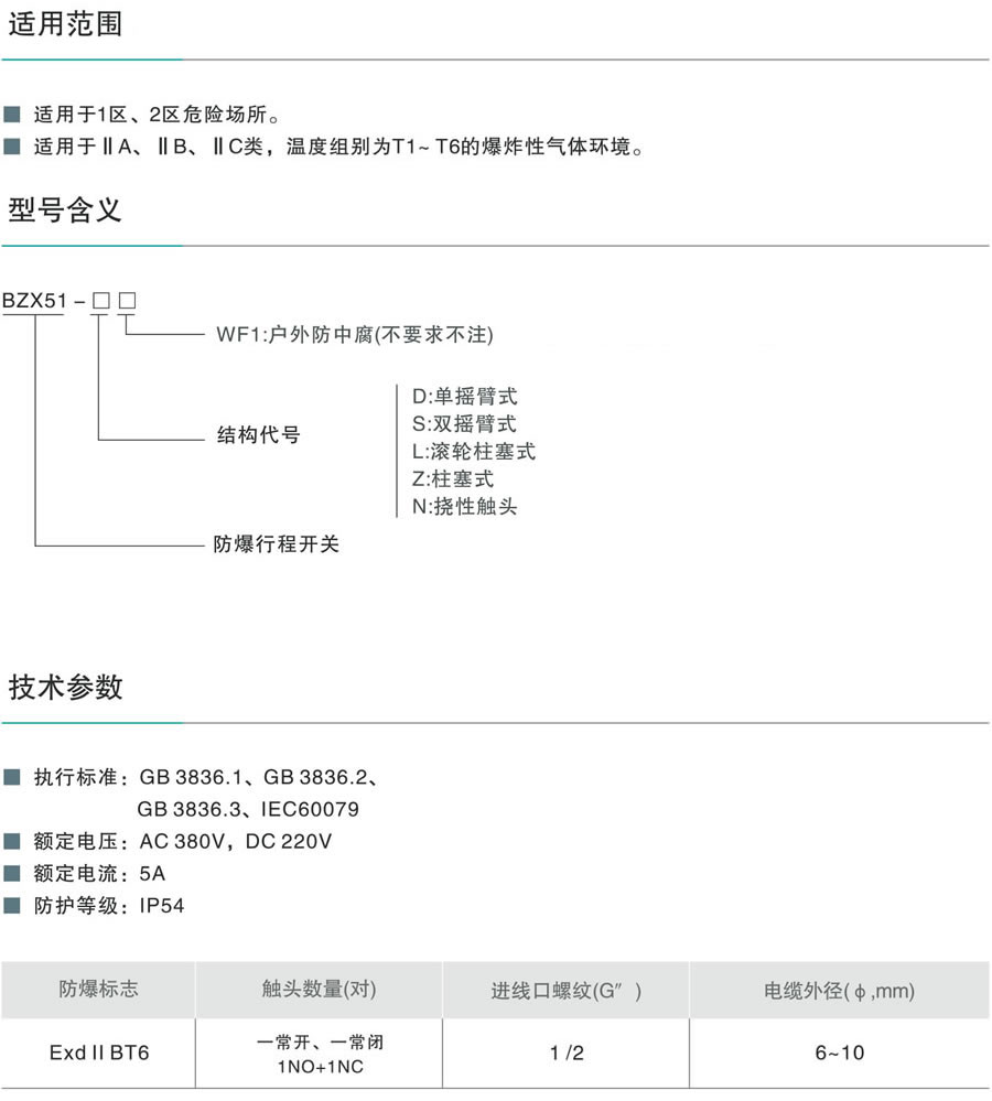 BZX51系列防爆行程開(kāi)關(guān)(ⅡB、ⅡC)