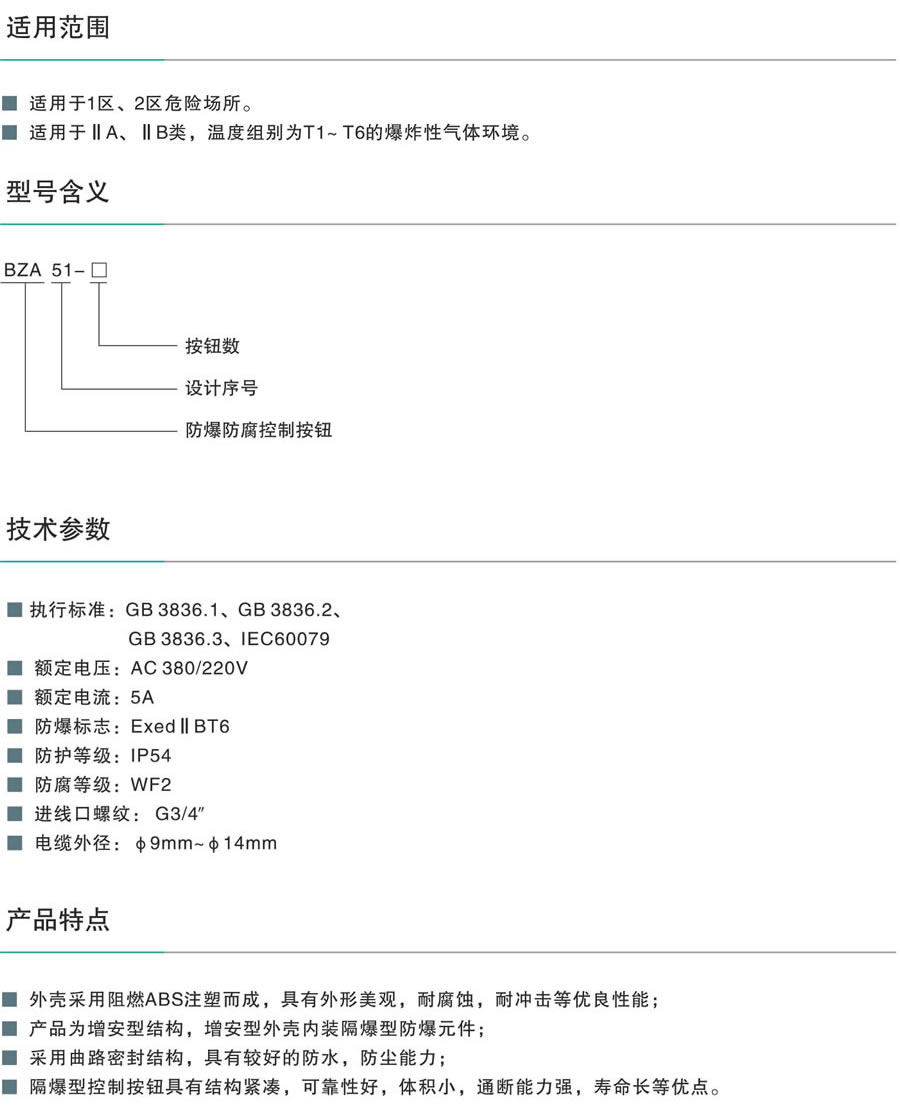 防爆合格證:BZA51 AC380V/220V 6A防爆防腐控制按鈕