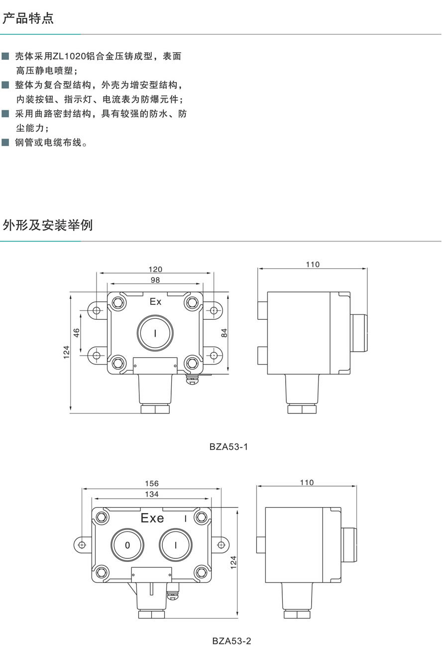 防爆控制按鈕(防爆按鈕操作柱) BZA53(證書編號:2020312304000682)
