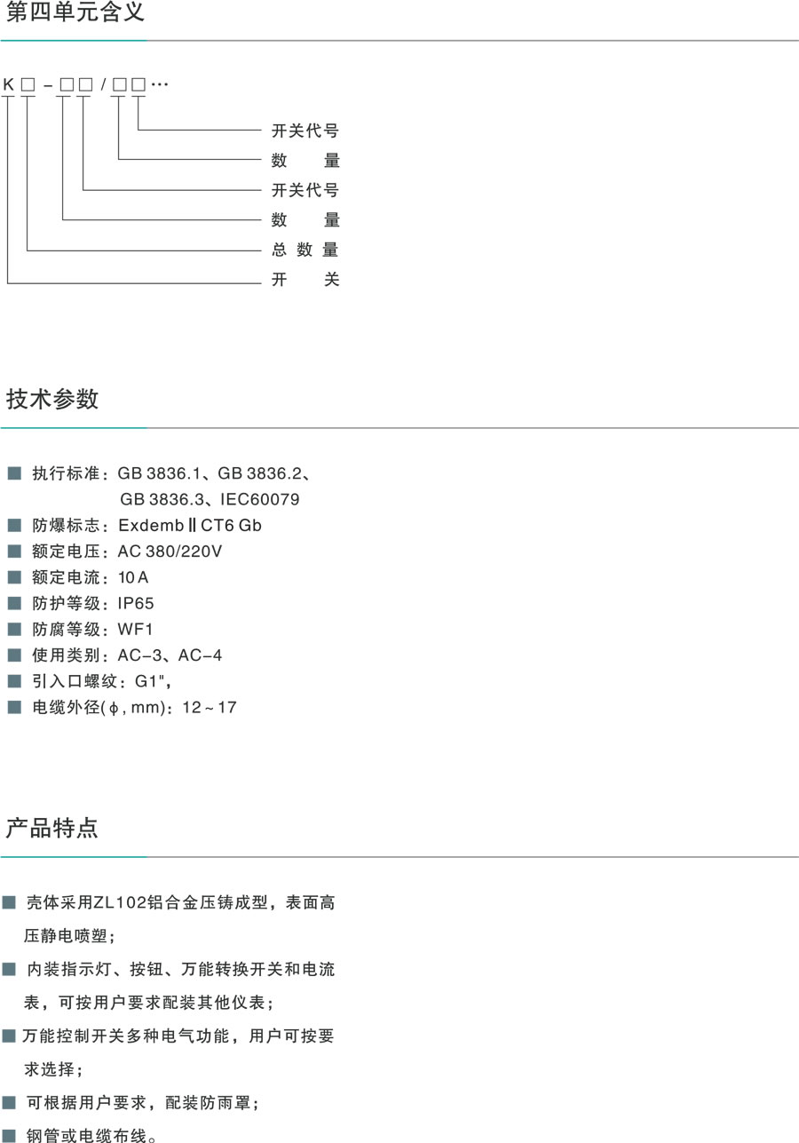 適用于1區(qū)、2區(qū)危險(xiǎn)場(chǎng)所。 適用于ⅡA、ⅡB類、ⅡC類,溫度組別為T1~T6的爆炸性氣體環(huán)境。