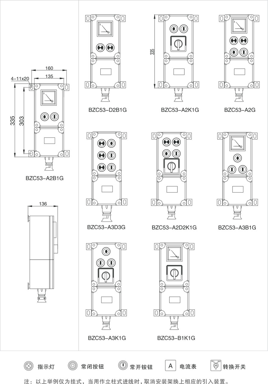 防爆合格證:BZC53-A2B1D3K1L AC380V/220V 10A防爆操作柱