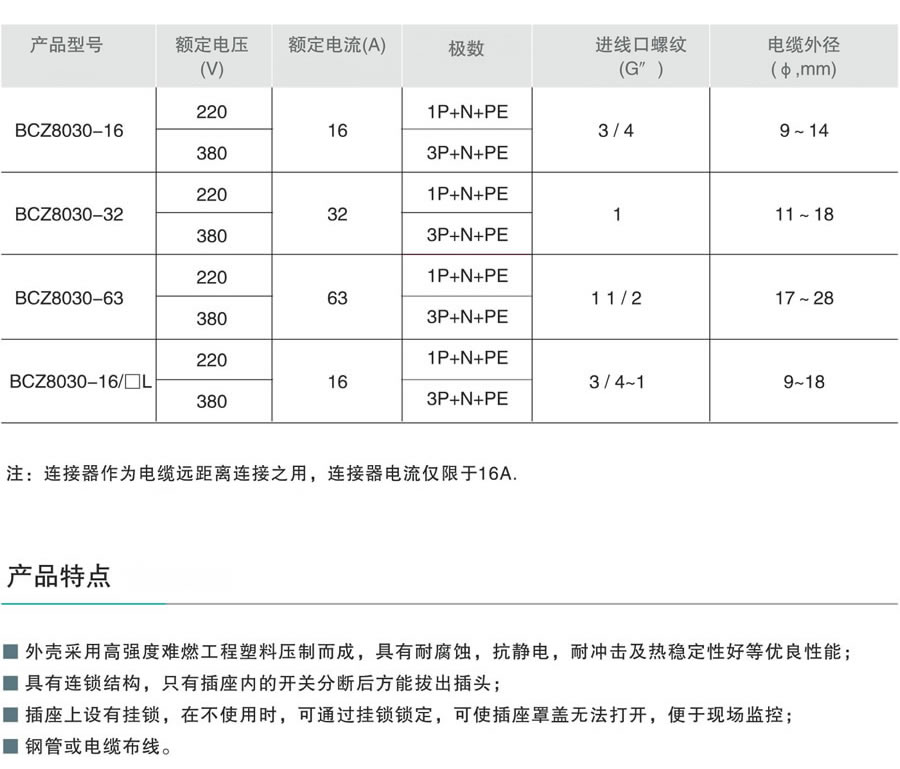> BCZ8030系列防爆防腐插接裝置(ⅡC)