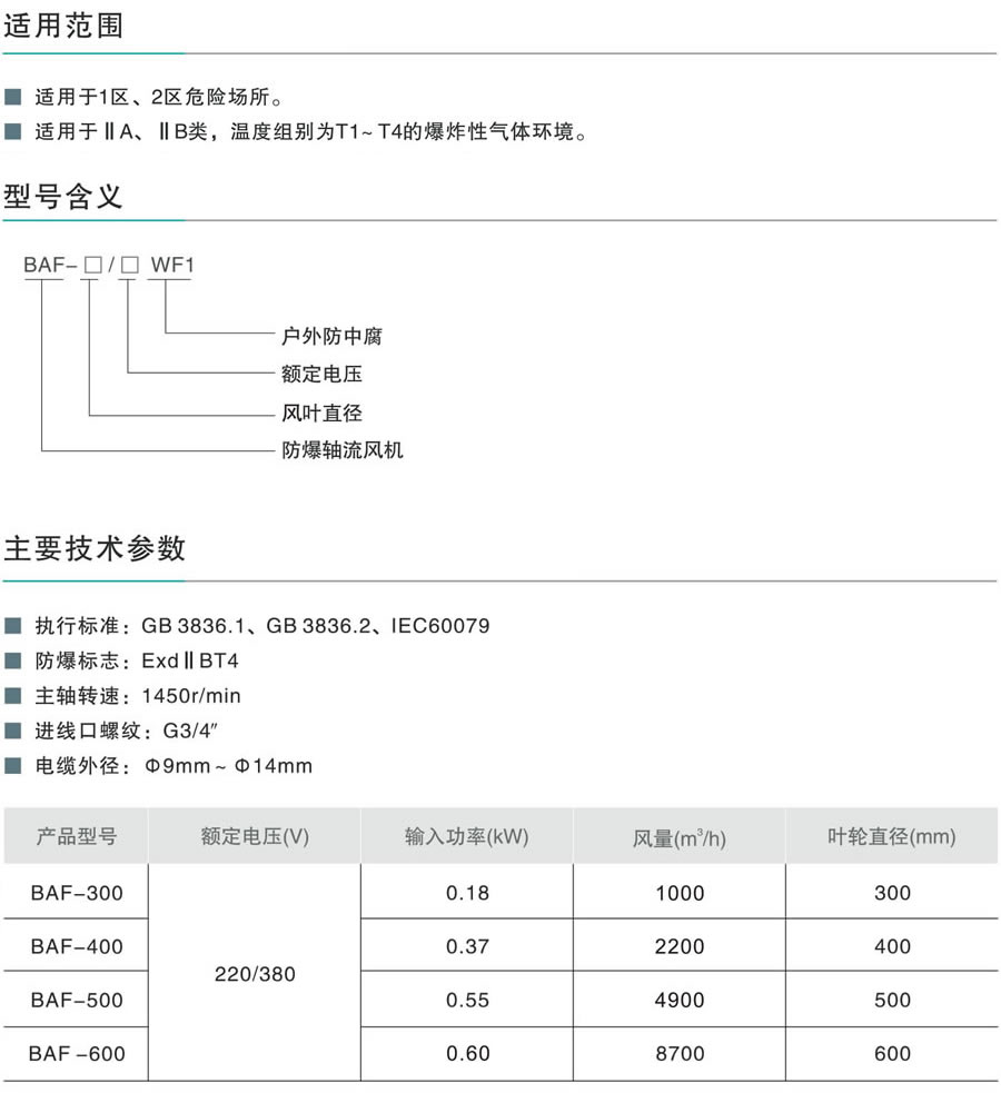 BAF系列防爆軸流風(fēng)機(jī)(ⅡB)