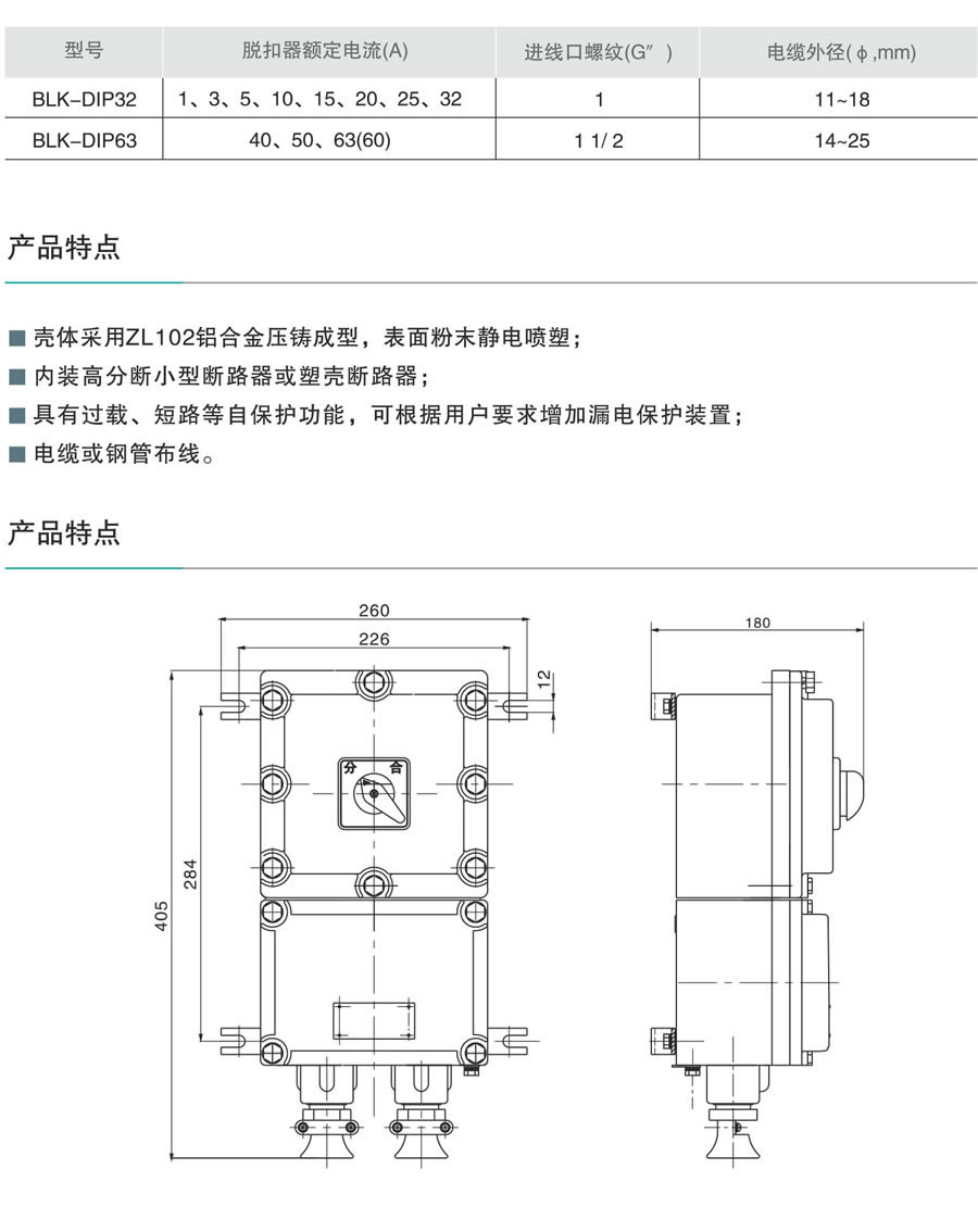 殼體采用ZL102鋁合金壓鑄成型,表面粉末靜電噴塑;內(nèi)裝高分?jǐn)嘈⌒蛿嗦菲骰蛩軞嗦菲?;具有過載、短路等自保護(hù)功能,可根據(jù)用戶要求增加漏電保護(hù)裝置;電纜或鋼管布線。