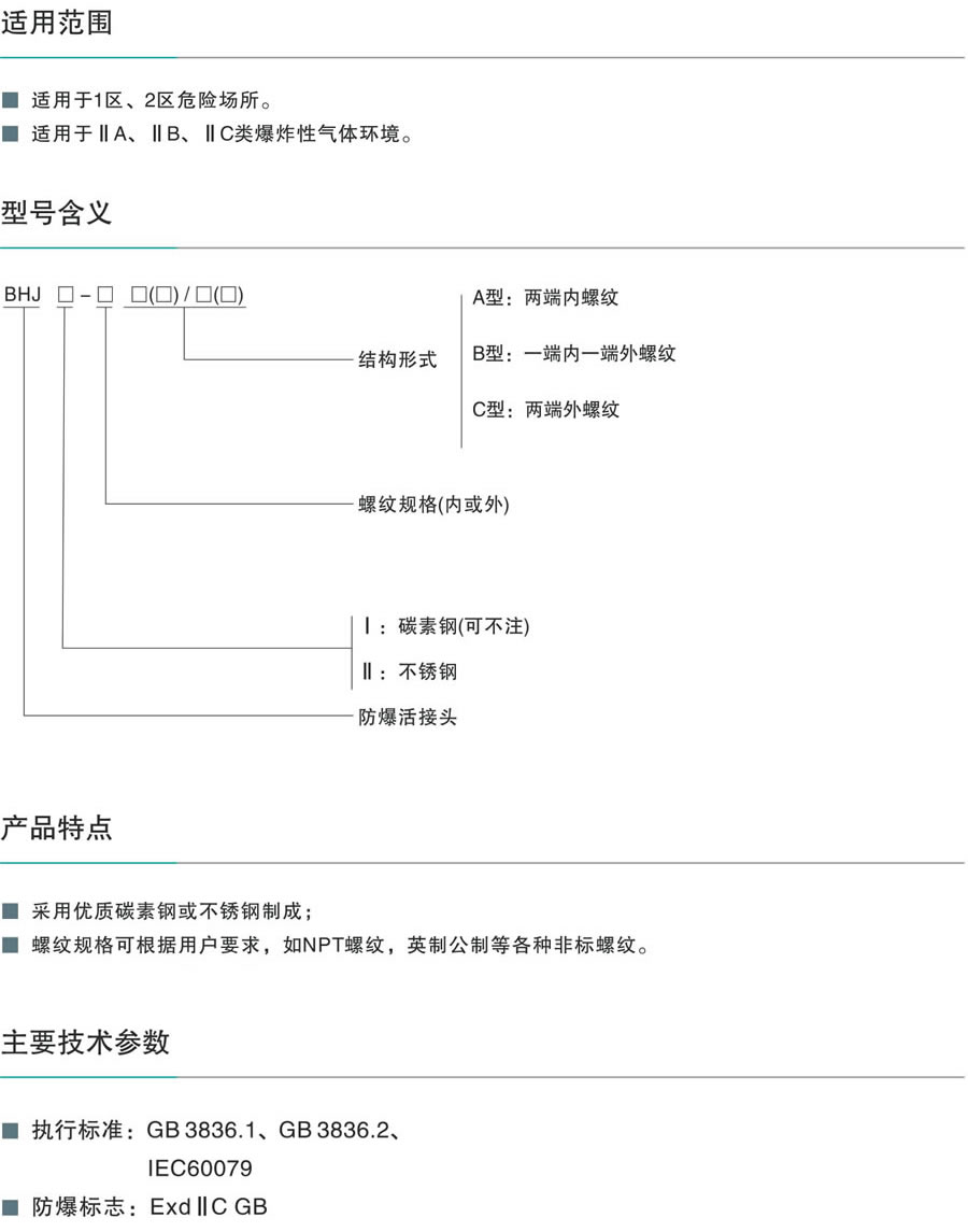 防爆合格證:BHJ-NPT3" 防爆活接頭
