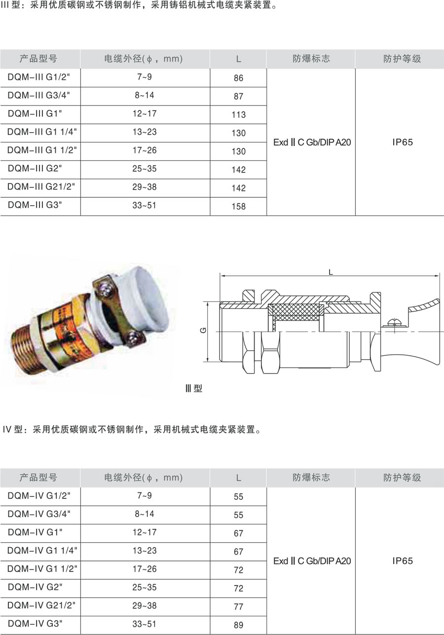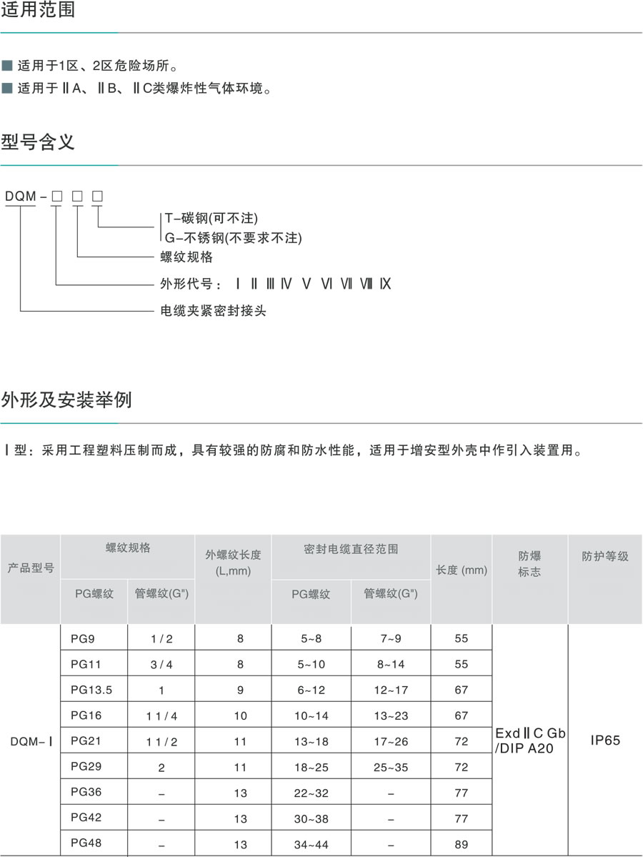 防爆合格證:DQM 防爆電纜夾緊密封接頭