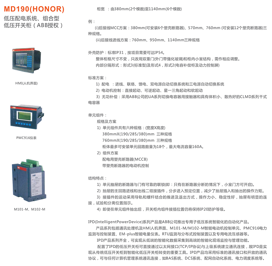 MD190(HONOR)低壓配電系統(tǒng)-組合型低壓開關(guān)柜