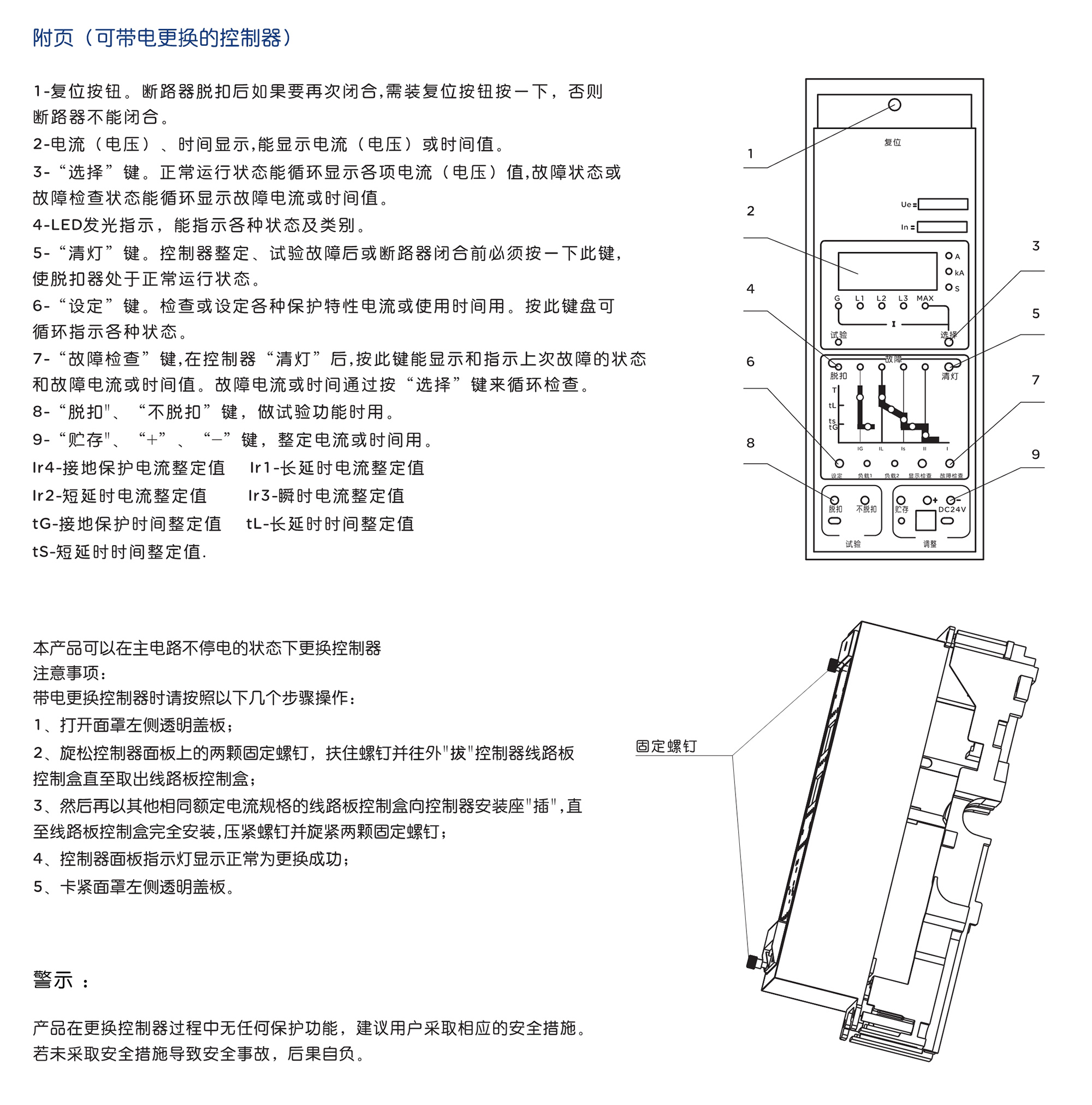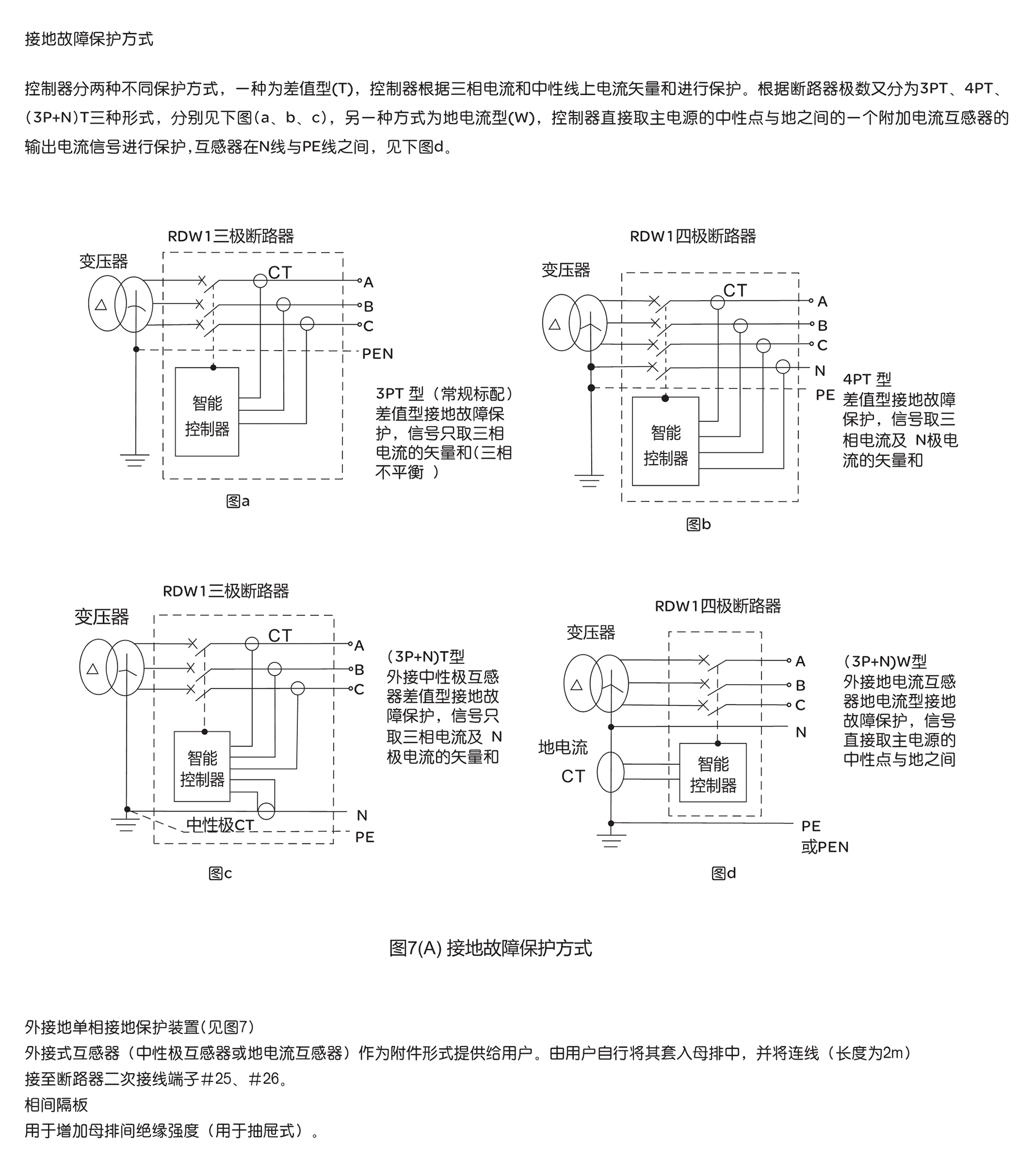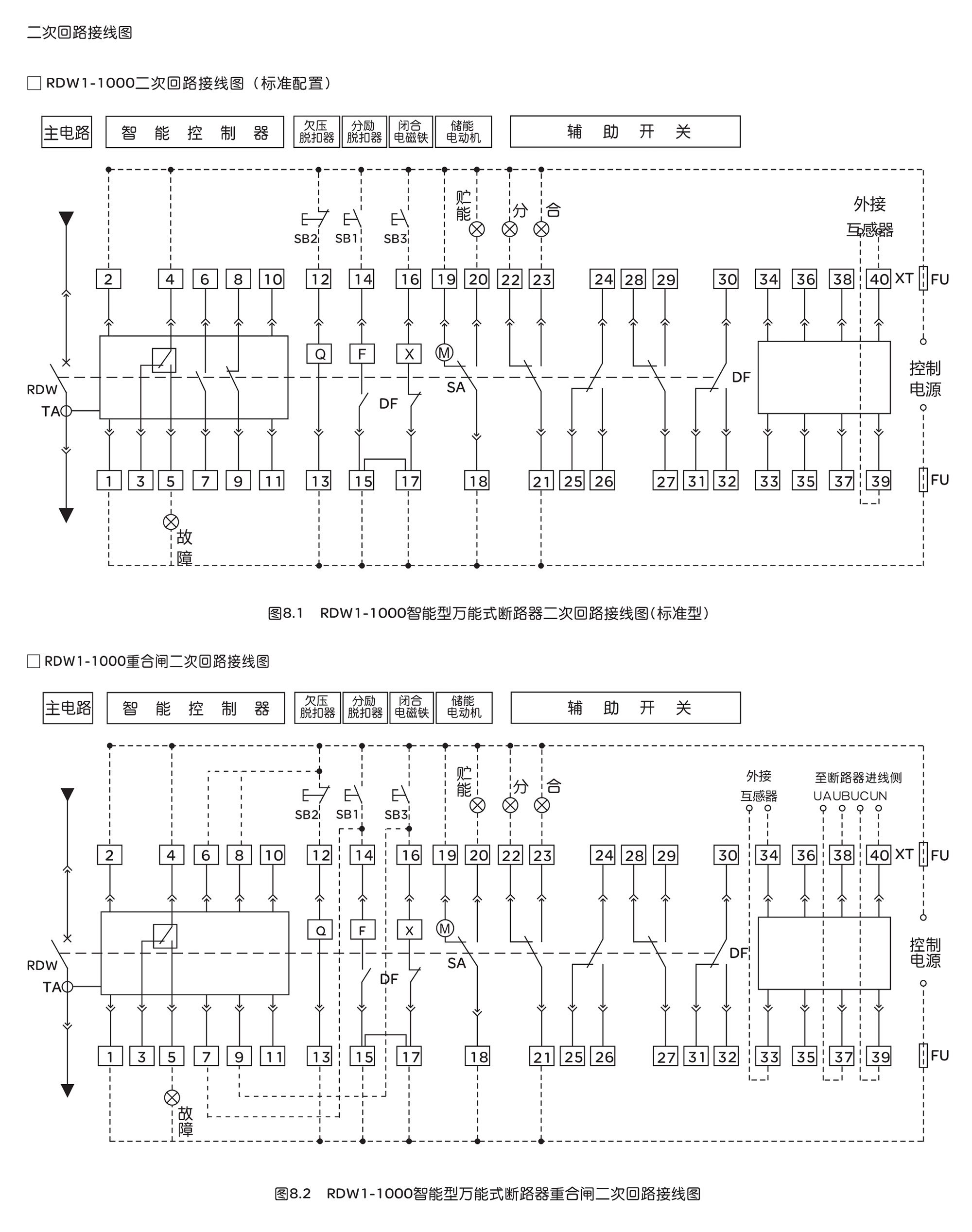 RDW1系列智能型萬(wàn)能式低壓斷路器,適用于交流50Hz,額定工作電壓400V或690V,額定電流200A~6300A的配電網(wǎng)絡(luò)中,用來(lái)分配電能和保護(hù)線路及電源設(shè)備免受過(guò)載、欠電壓、短路、單相接地等故障的危害。斷路器具有智能化保護(hù)功能,選擇性保護(hù)精確,能提高供電可靠性,避免不必要的停電。同時(shí)帶有開放式通訊接口,可實(shí)現(xiàn)四遙功能,以滿足控制中心和自動(dòng)化系統(tǒng)的要求。該斷路器不帶智能控制器及互感器時(shí)可作隔離器用。
