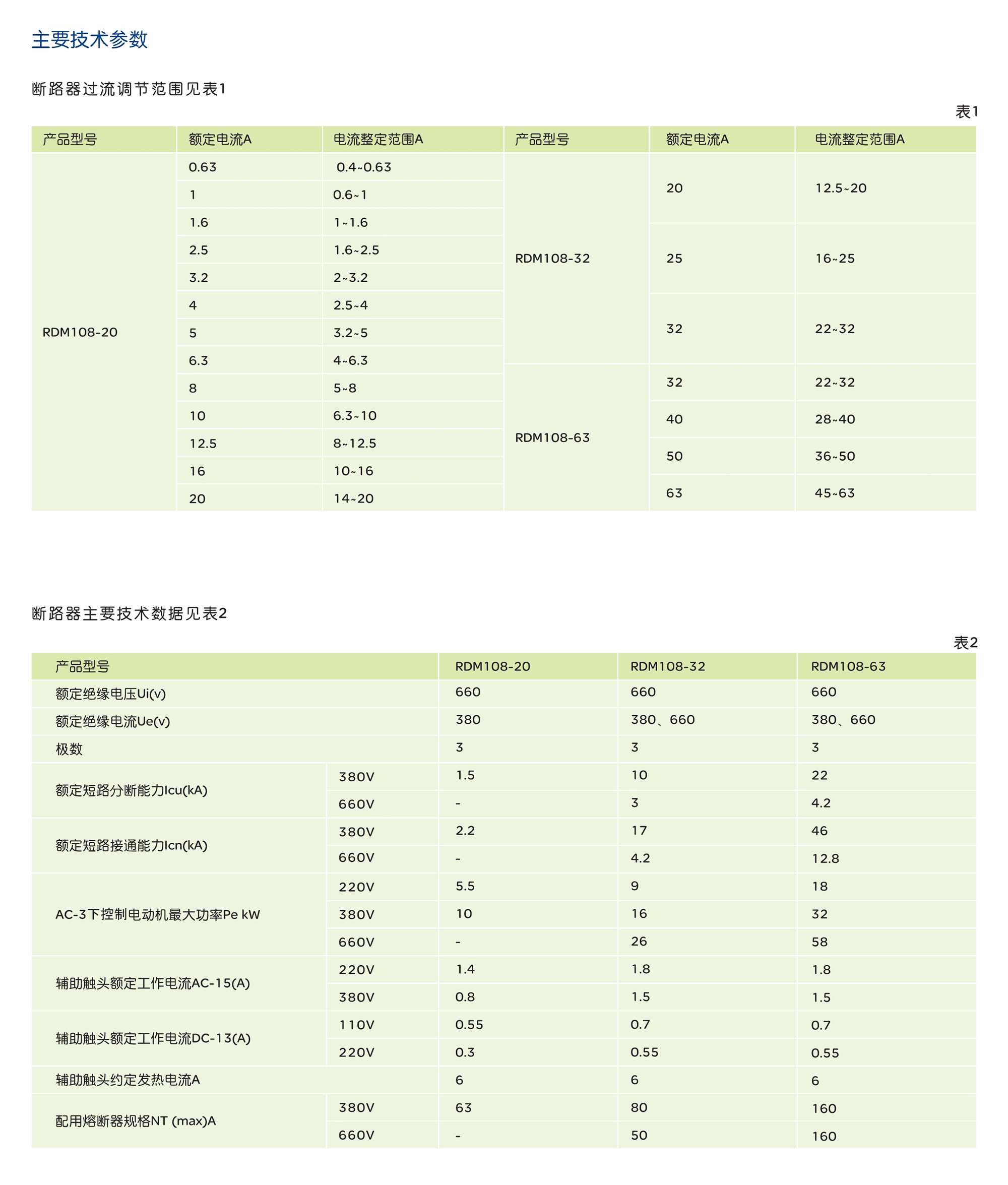 RDM108系列塑料外殼式斷路器適用于交流50Hz/60Hz 額定工作電壓至660V 額定