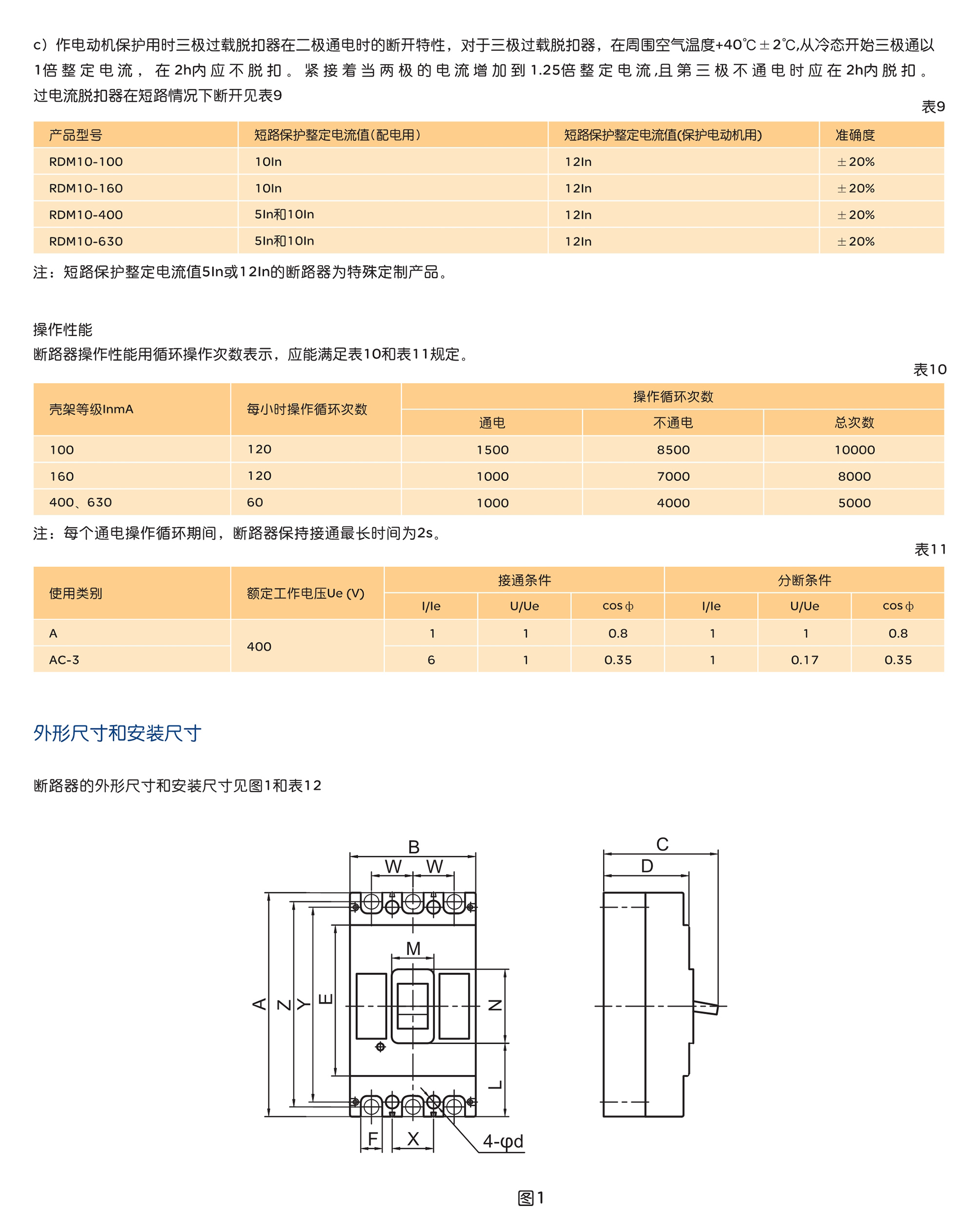 RDM10系列塑料外殼式斷路器,主要用于交流50Hz,額定電流從16A至630A,額定絕緣電壓至500V,額定工作電壓400V及以下的配電網(wǎng)格中,用來分配電能及作為線路及電氣設(shè)備的過載、短路和欠電壓保護。在正常情況下, 斷路器也可作為線路的不頻繁轉(zhuǎn)換之用,額定電流在400A及以下的斷路器亦可作為保護電動機和電動機的不頻繁起動之用。 產(chǎn)品符合:GB/T 14048.2 標(biāo)準(zhǔn)。