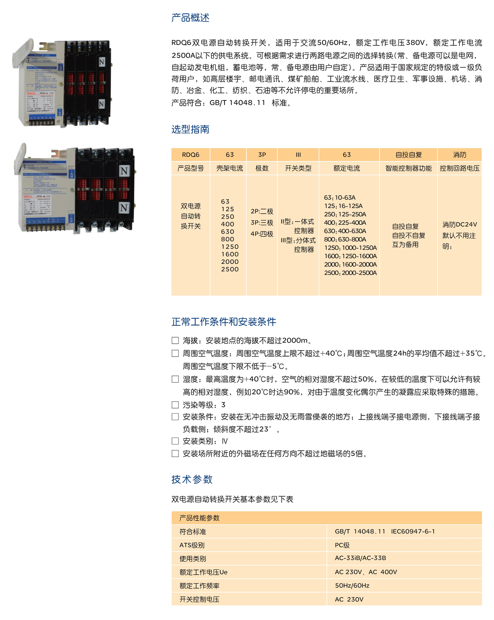 RDQ6雙電源自動轉(zhuǎn)換開關(guān),適用于交流50/60Hz,額定工作電壓380V,額定工作電流