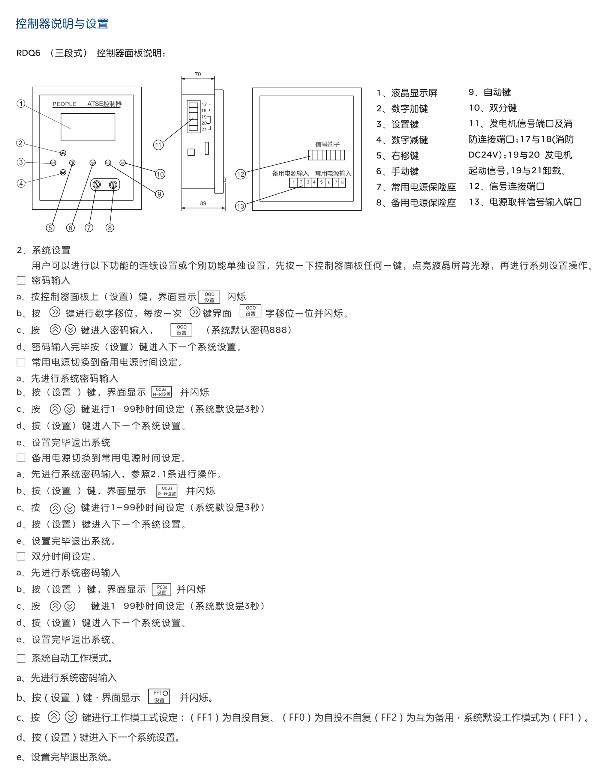 自起動發(fā)電機組,蓄電池等,常、備電源由用戶自定)。產(chǎn)品適用于國家規(guī)定的特級或一級負