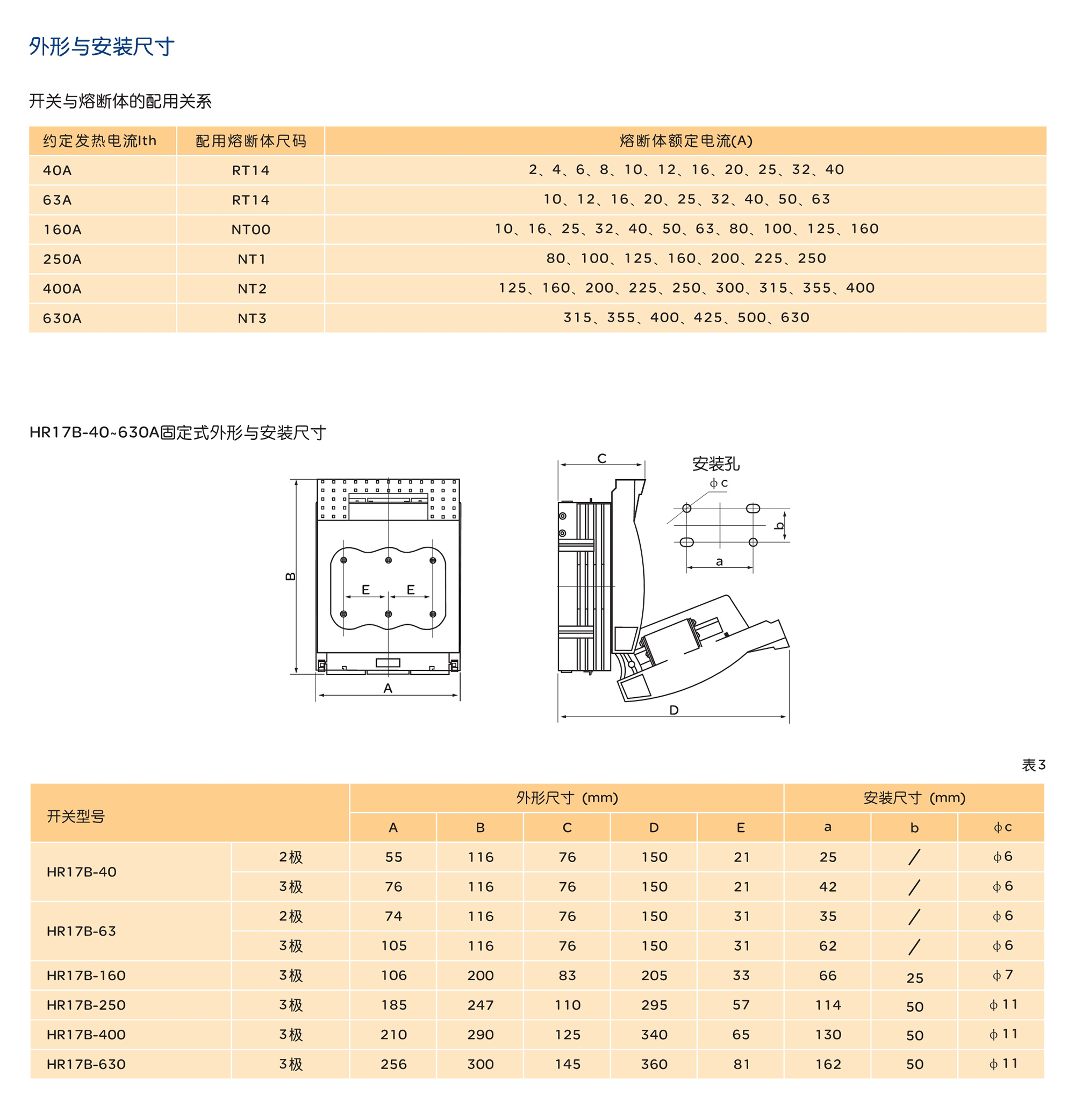HR17B系列熔斷器式隔離開(kāi)關(guān)可帶負(fù)荷操作,適用于額定電流40A~630A,有2組、3組、4組之