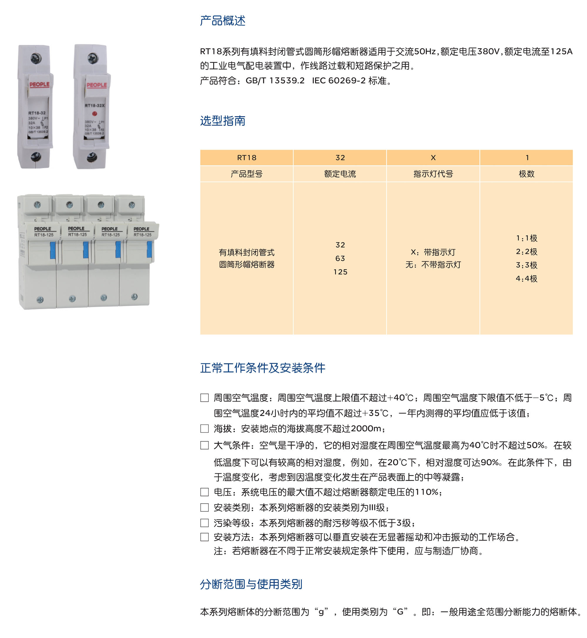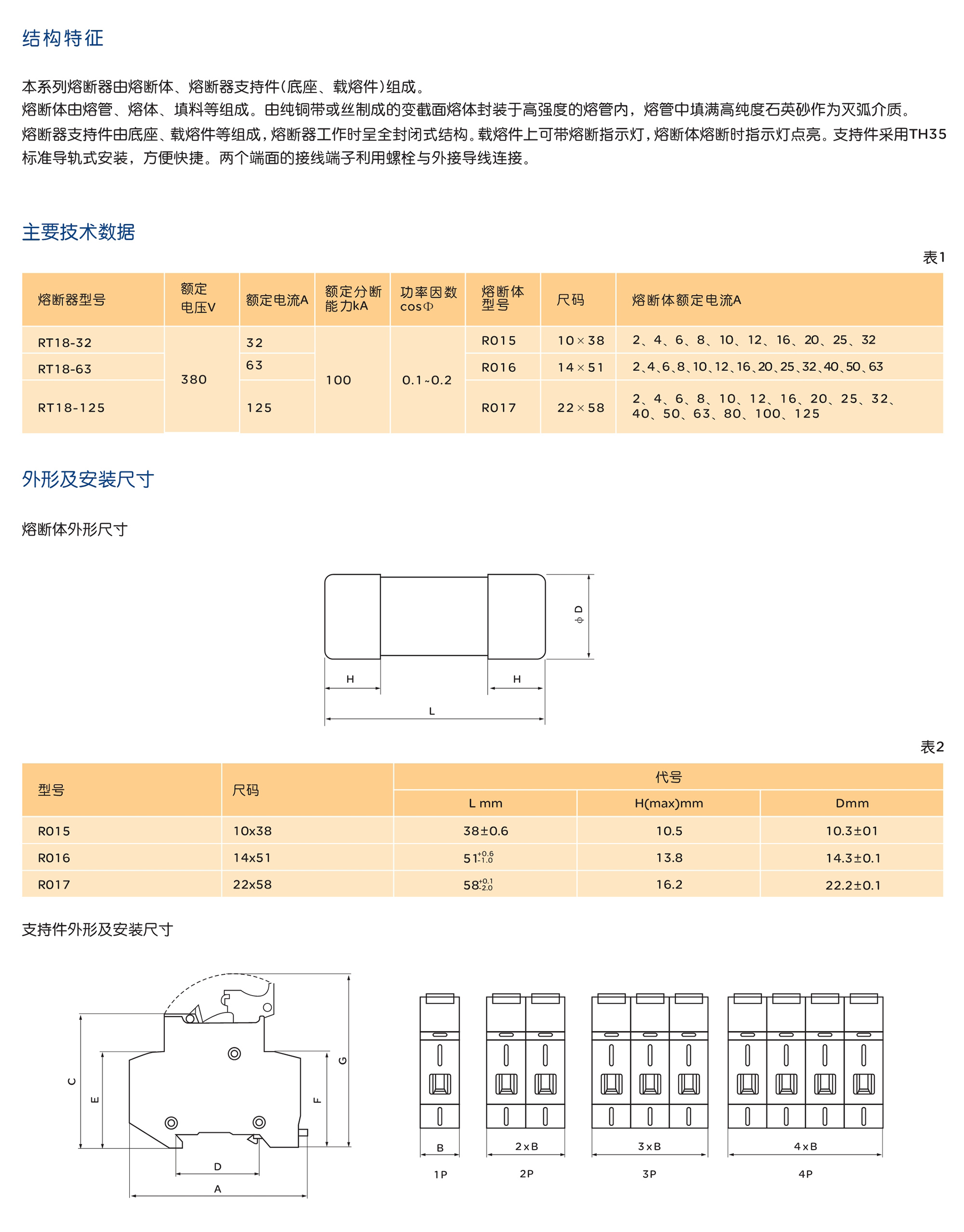 RT18系列有填料封閉管式圓筒形帽熔斷器適用于交流50Hz,額定電壓380V,額定電流至125A 的工業(yè)電氣配電裝置中,作線路過載和短路保護(hù)之用。 產(chǎn)品符合:GB/T 13539.2 IEC 60269-2 標(biāo)準(zhǔn)。