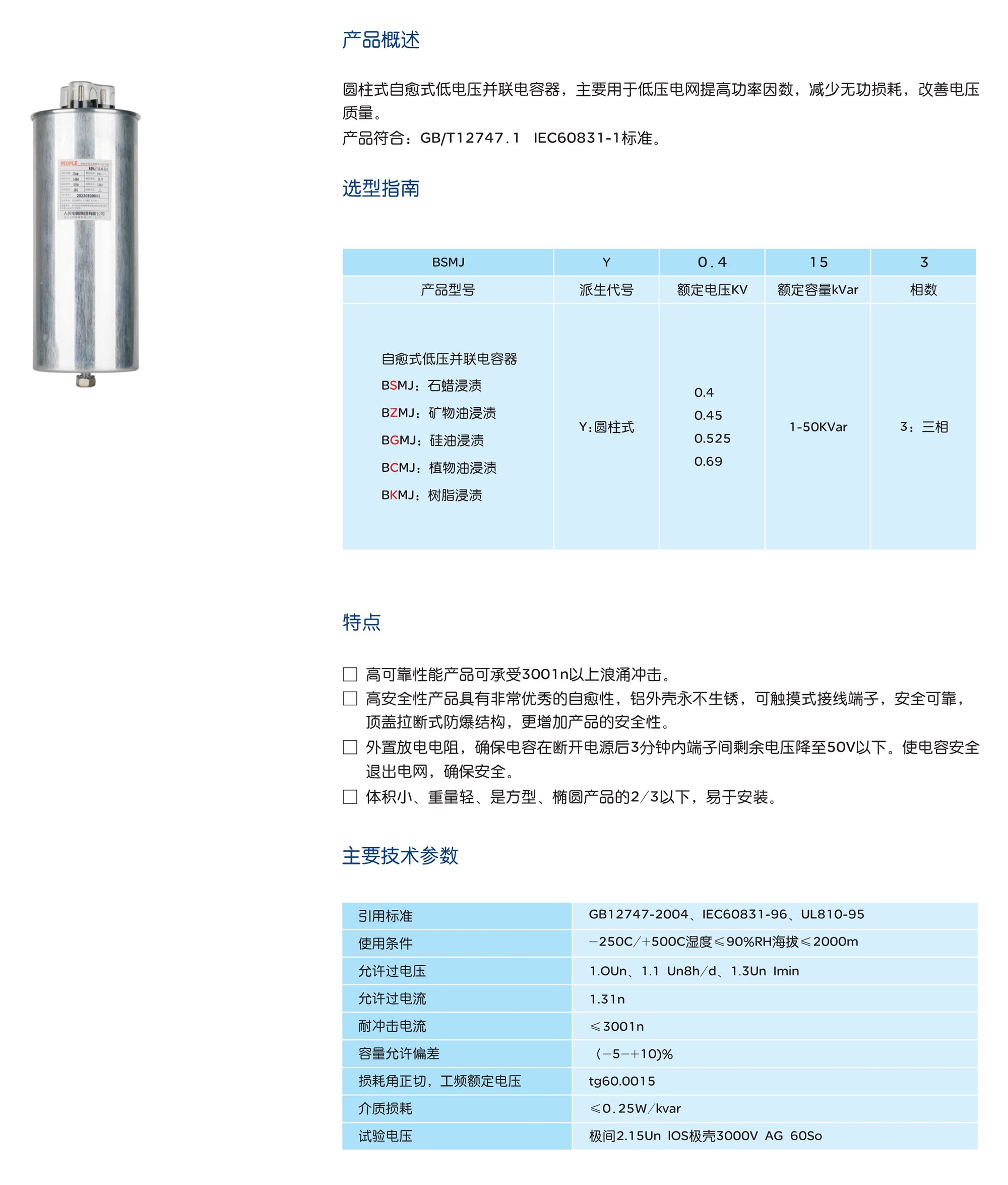 BSMJ 圓柱式自愈式低電壓并聯(lián)電容器