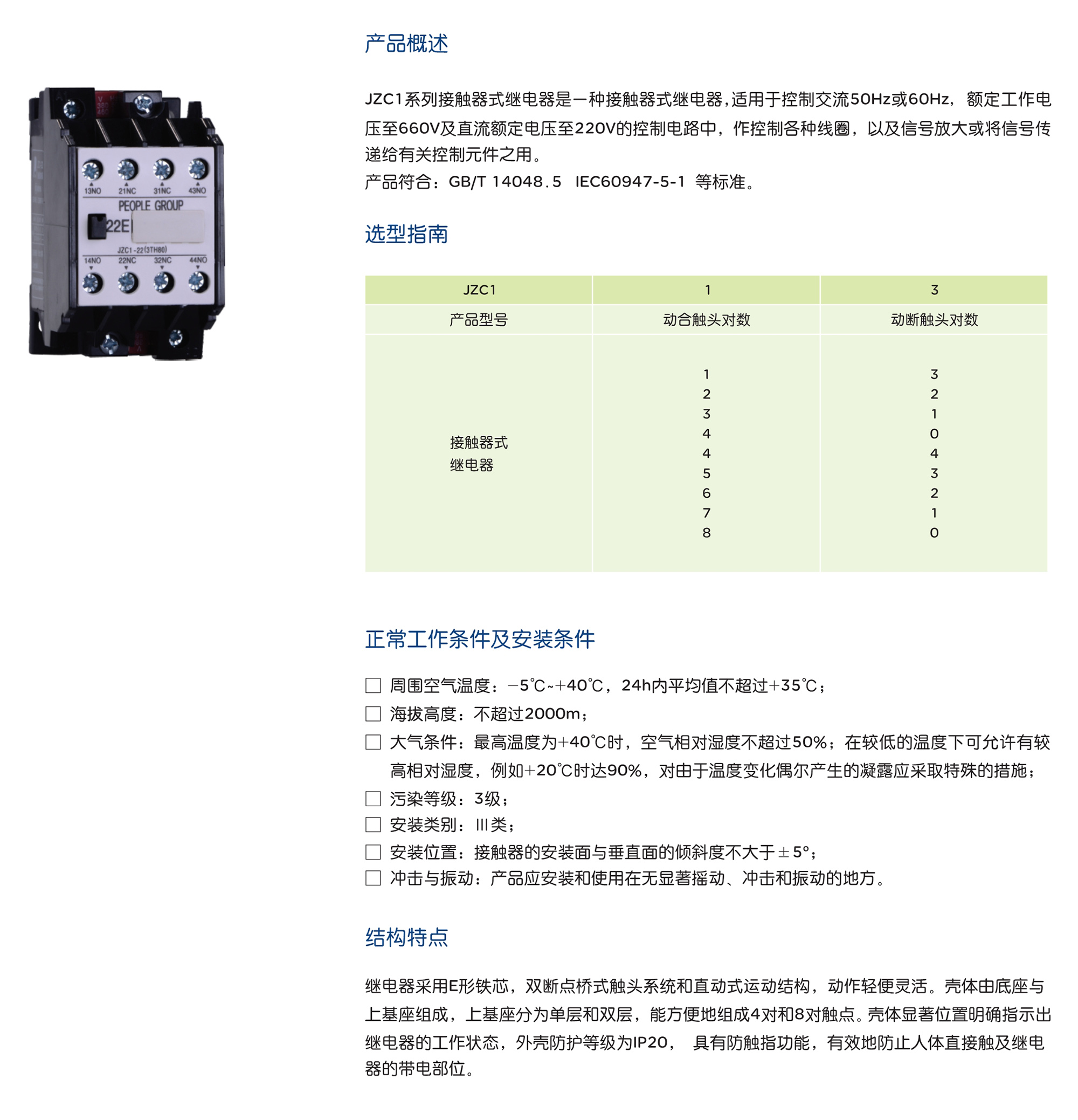 > JZC1 系列接觸器式繼電器