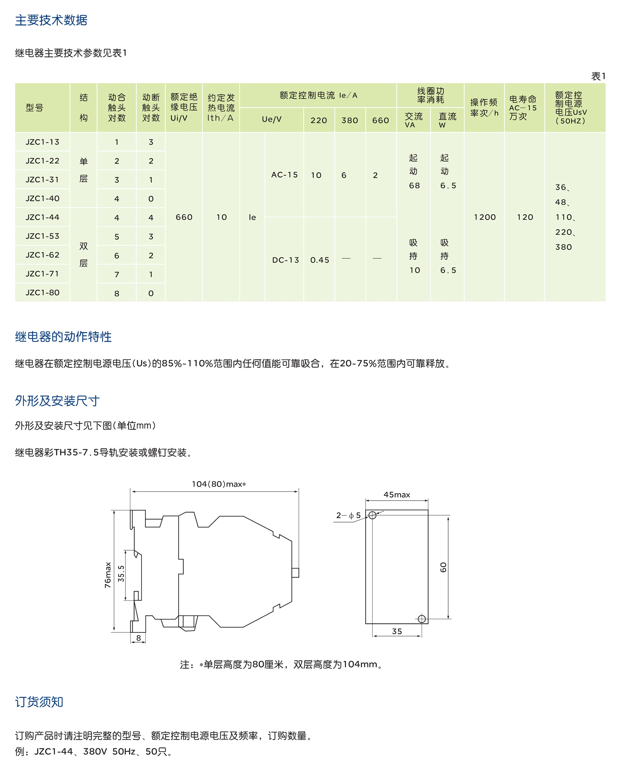 JZC1 系列接觸器式繼電器