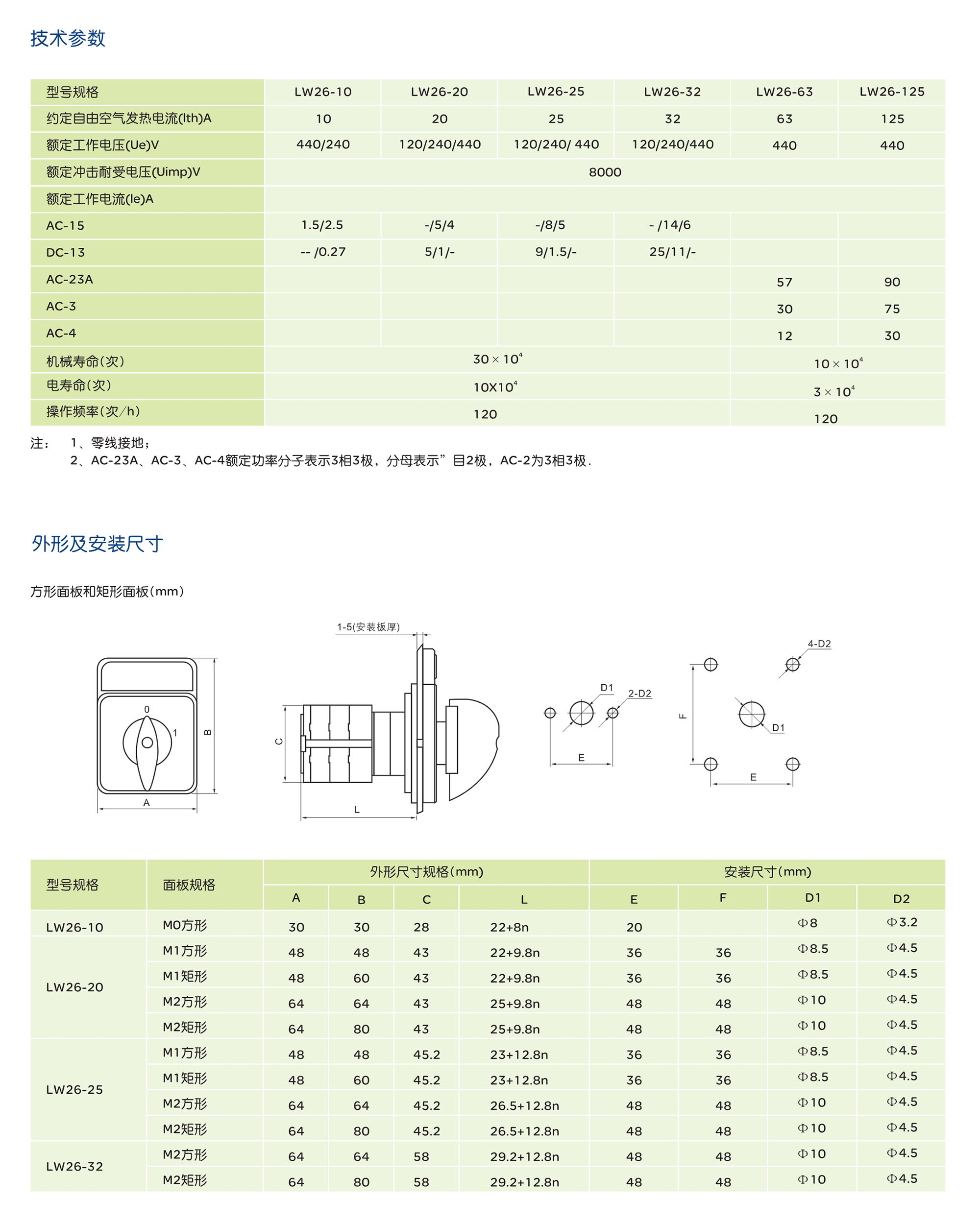 注:LW26可替代國(guó)內(nèi)現(xiàn)有的LW5、LW6、LW12、LW15、H25、H212等各類開關(guān)以及進(jìn)口設(shè)備上轉(zhuǎn)換開關(guān)。