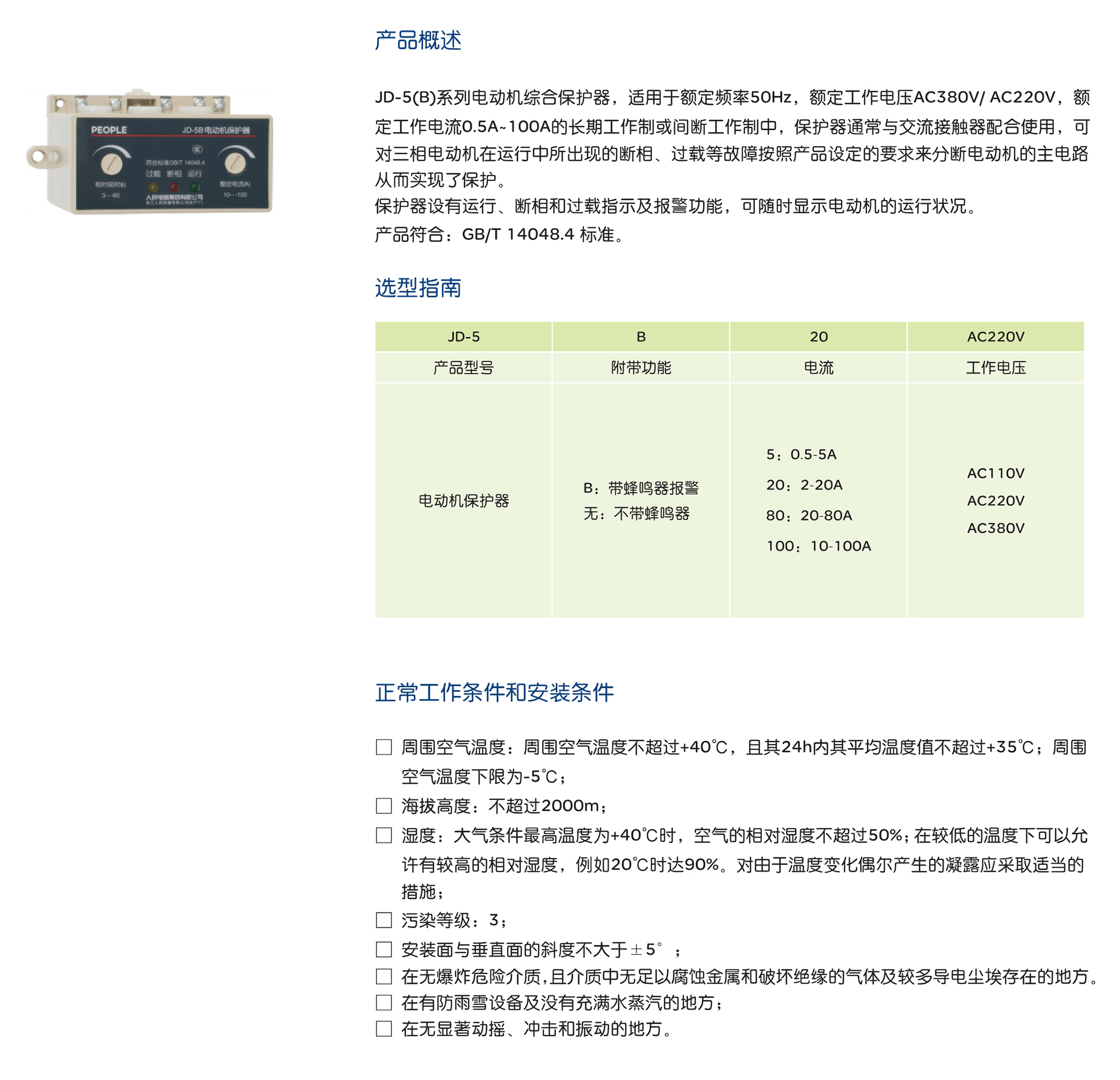 JD-5(B)系列電動(dòng)機(jī)綜合保護(hù)器,適用于額定頻率50Hz,額定工作電壓AC380V/ AC220V,額