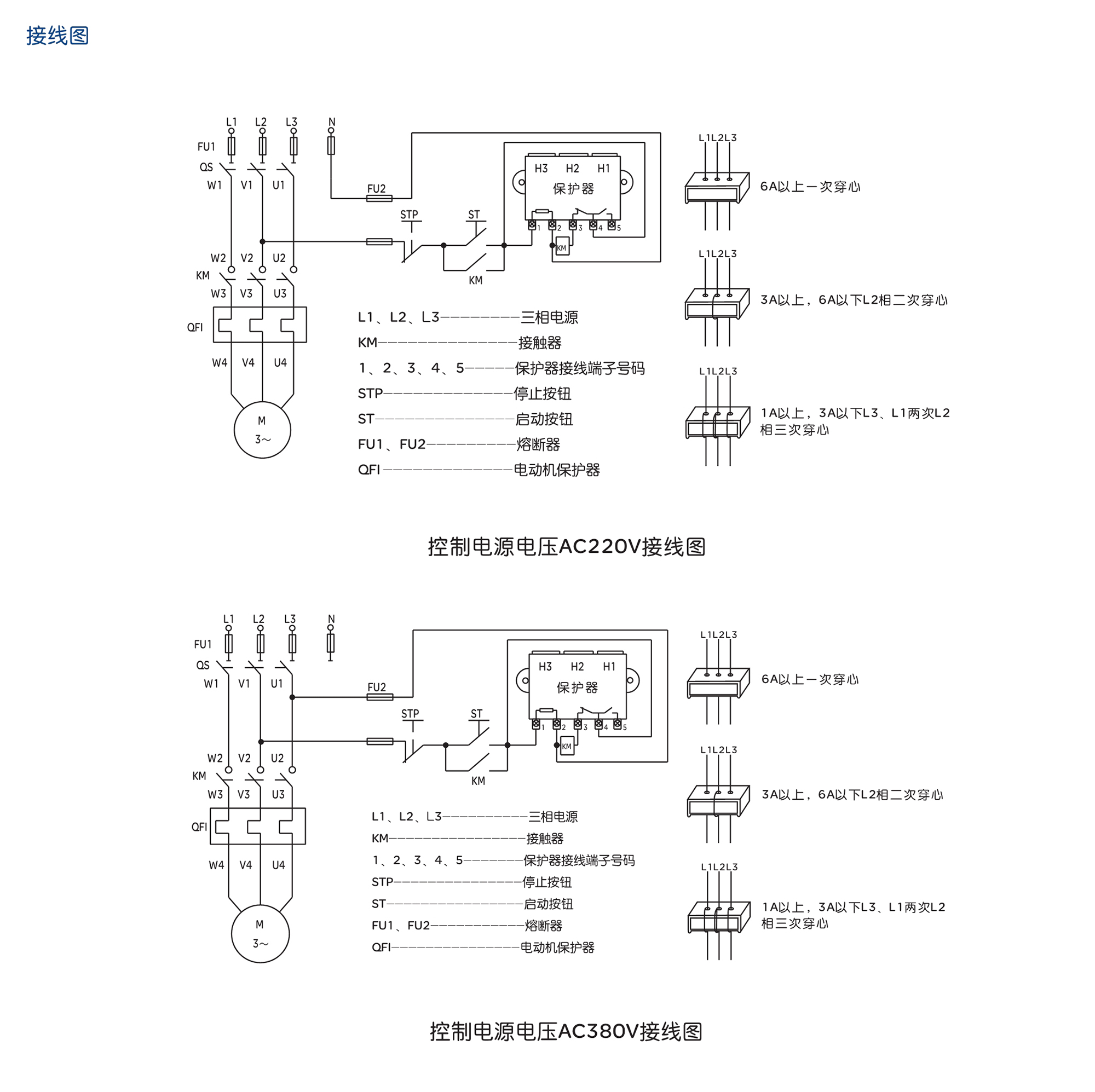 定工作電流0.5A~100A的長期工作制或間斷工作制中,保護(hù)器通常與交流接觸器配合使用,可