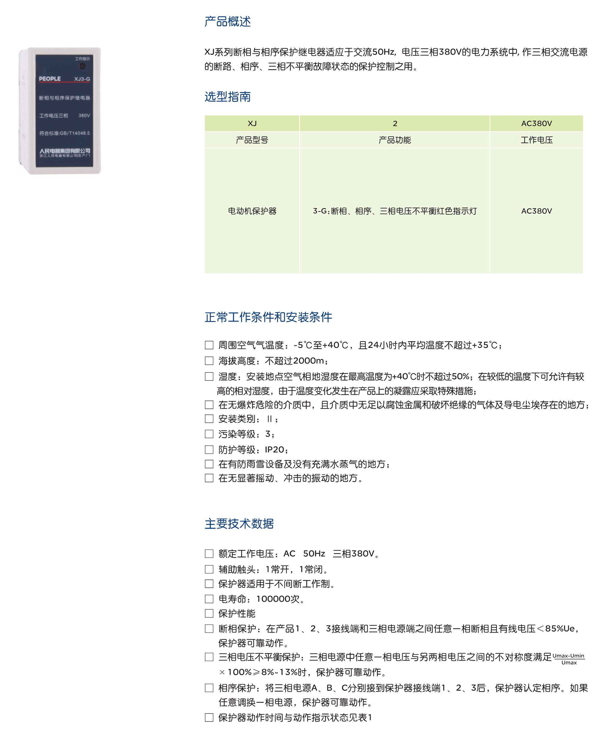 XJ系列斷相與相序保護(hù)繼電器適應(yīng)于交流50Hz,電壓三相380V的電力系統(tǒng)中,作三相交流電源的斷路、相序、三相不平衡故障狀態(tài)的保護(hù)控制之用。