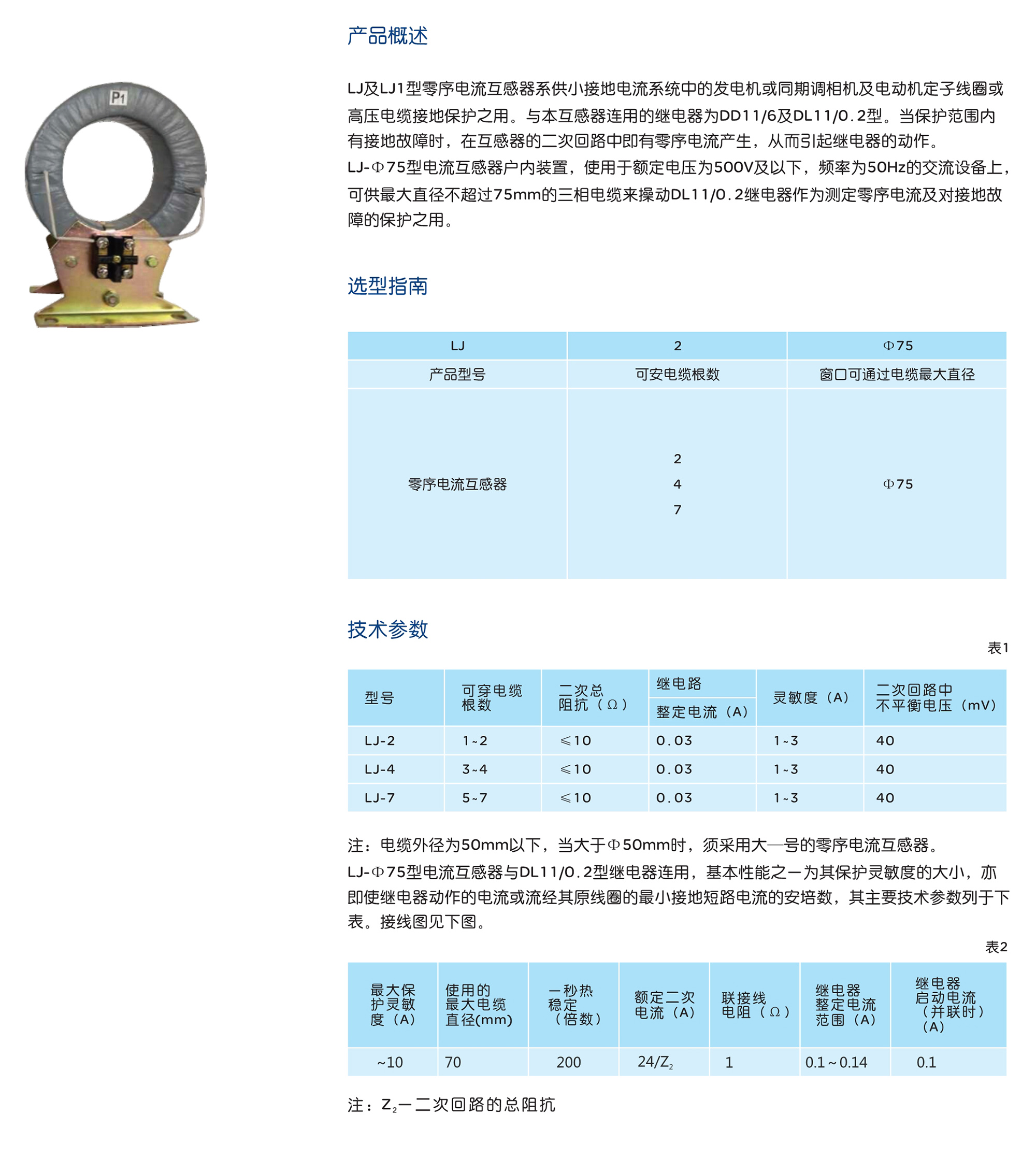 LJ及LJ1型零序電流互感器系供小接地電流系統(tǒng)中的發(fā)電機(jī)或同期調(diào)相機(jī)及電動(dòng)機(jī)定子線圈或
