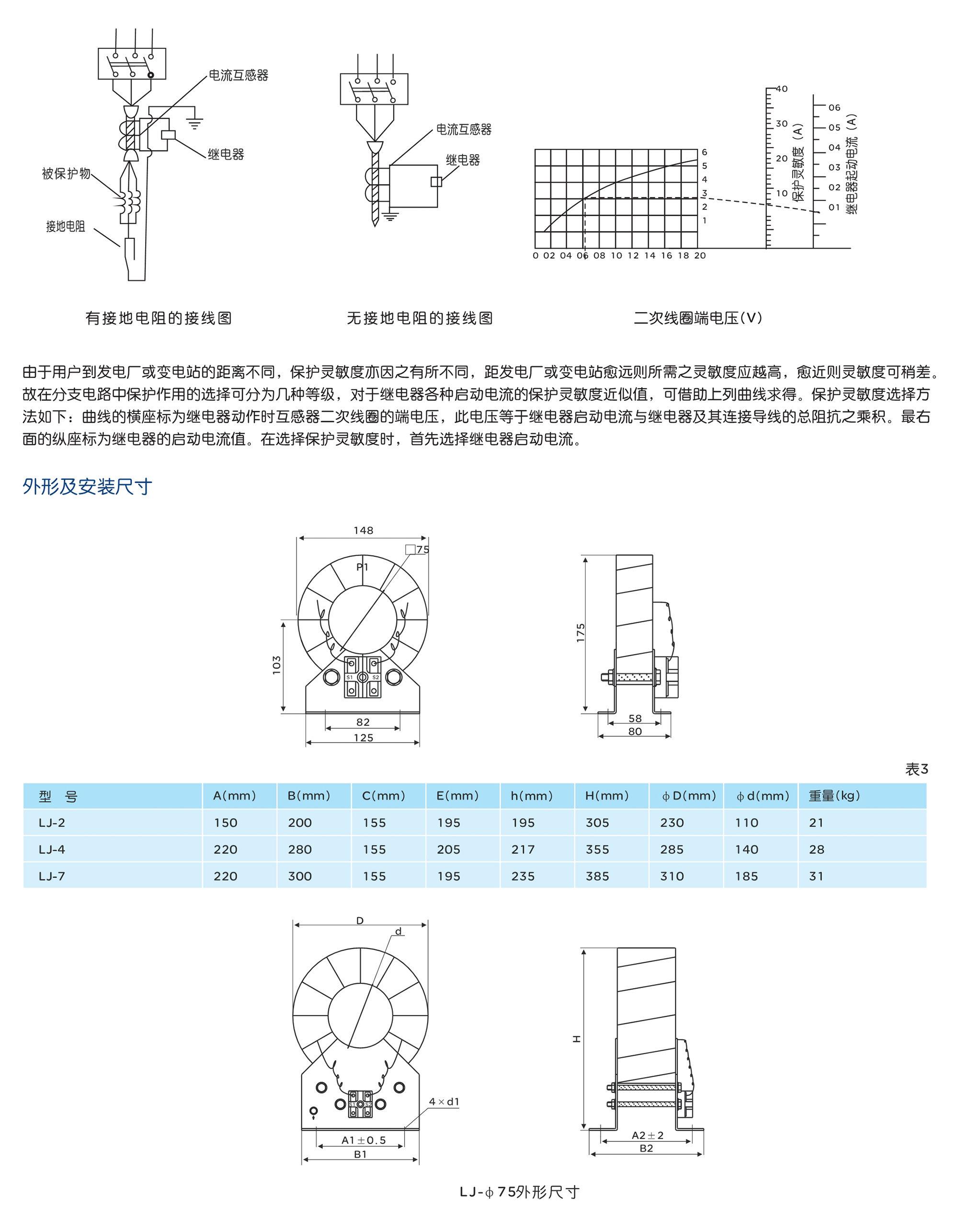 可供最大直徑不超過(guò)75mm的三相電纜來(lái)操動(dòng)DL11/0.2繼電器作為測(cè)定零序電流及對(duì)接地故