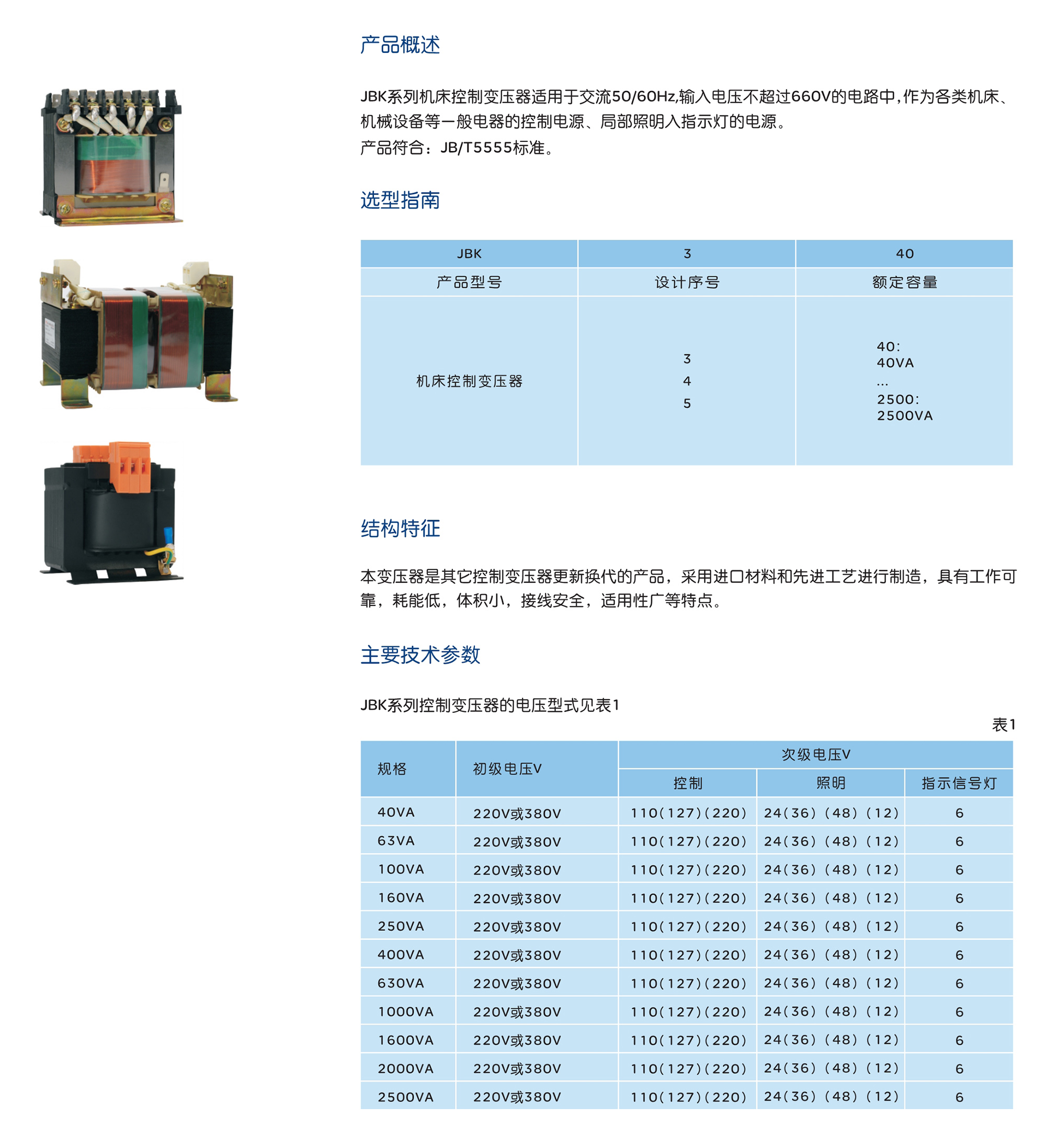 JBK系列機(jī)床控制變壓器適用于交流50/60Hz,輸入電壓不超過660V的電路中,作為各類機(jī)床、 機(jī)械設(shè)備等一般電器的控制電源、局部照明入指示燈的電源。 產(chǎn)品符合:JB/T5555標(biāo)準(zhǔn)。
