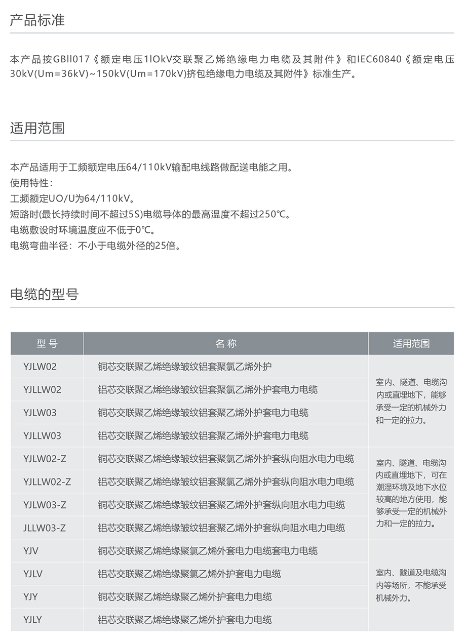 > 110kV交聯(lián)聚乙烯絕緣電力電纜