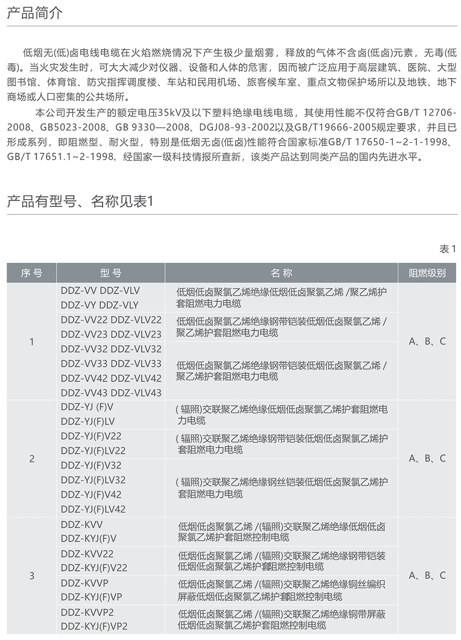 > 低煙無(低)鹵阻燃、耐火電線電纜