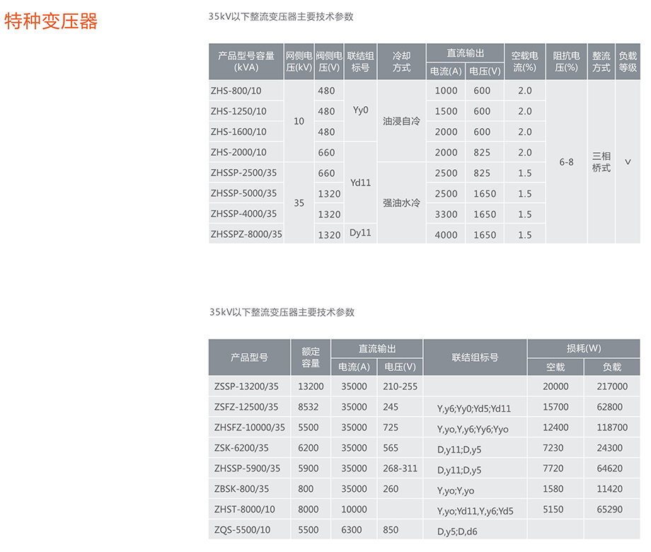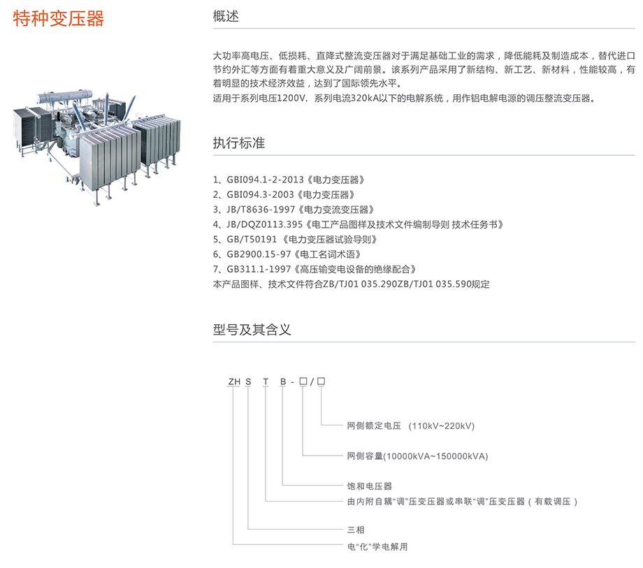 用于系列電壓1200V,系列電流320kA以下的電解系統(tǒng),用作鋁電解電源的調(diào)壓整流變壓器。