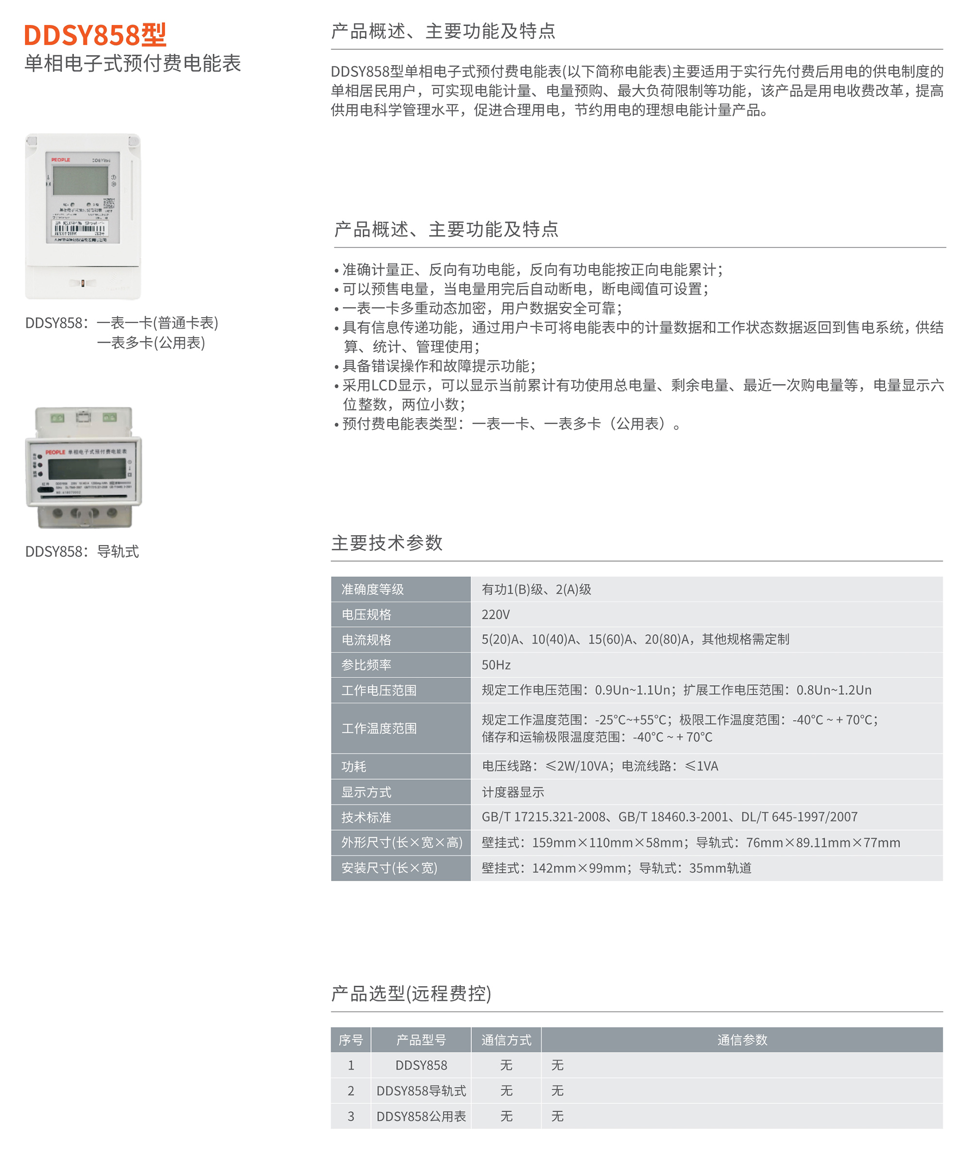 > DDSY858型單相電子式預(yù)付費電能表系列