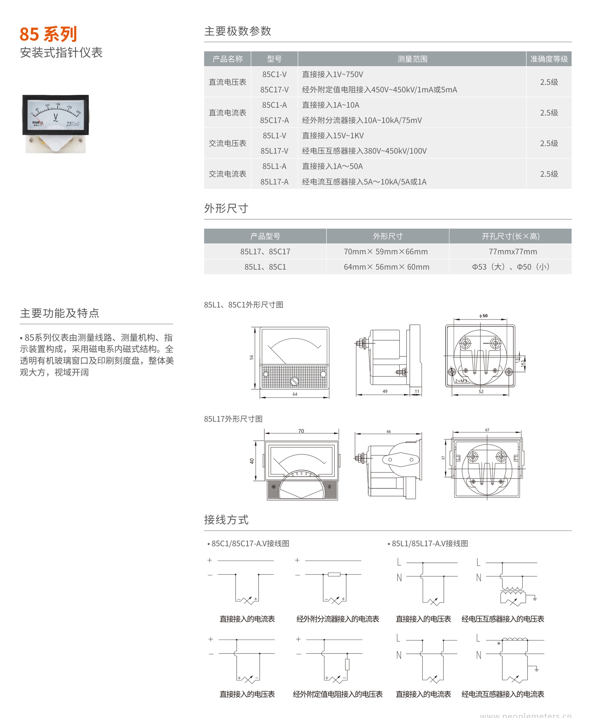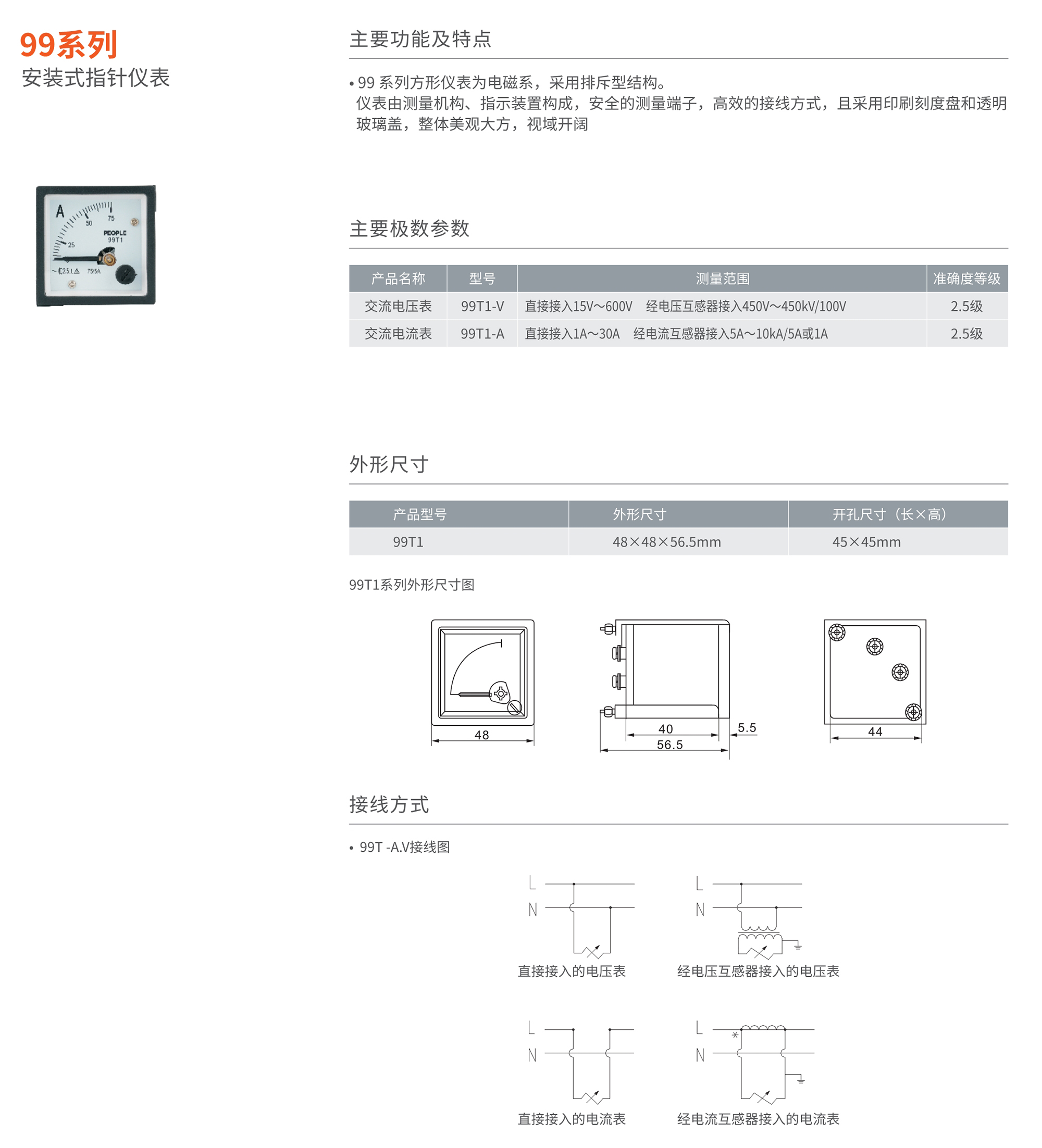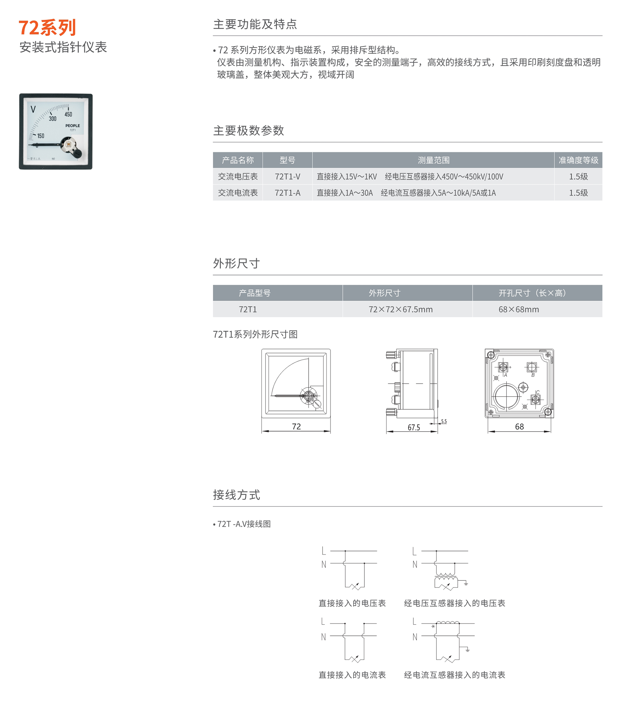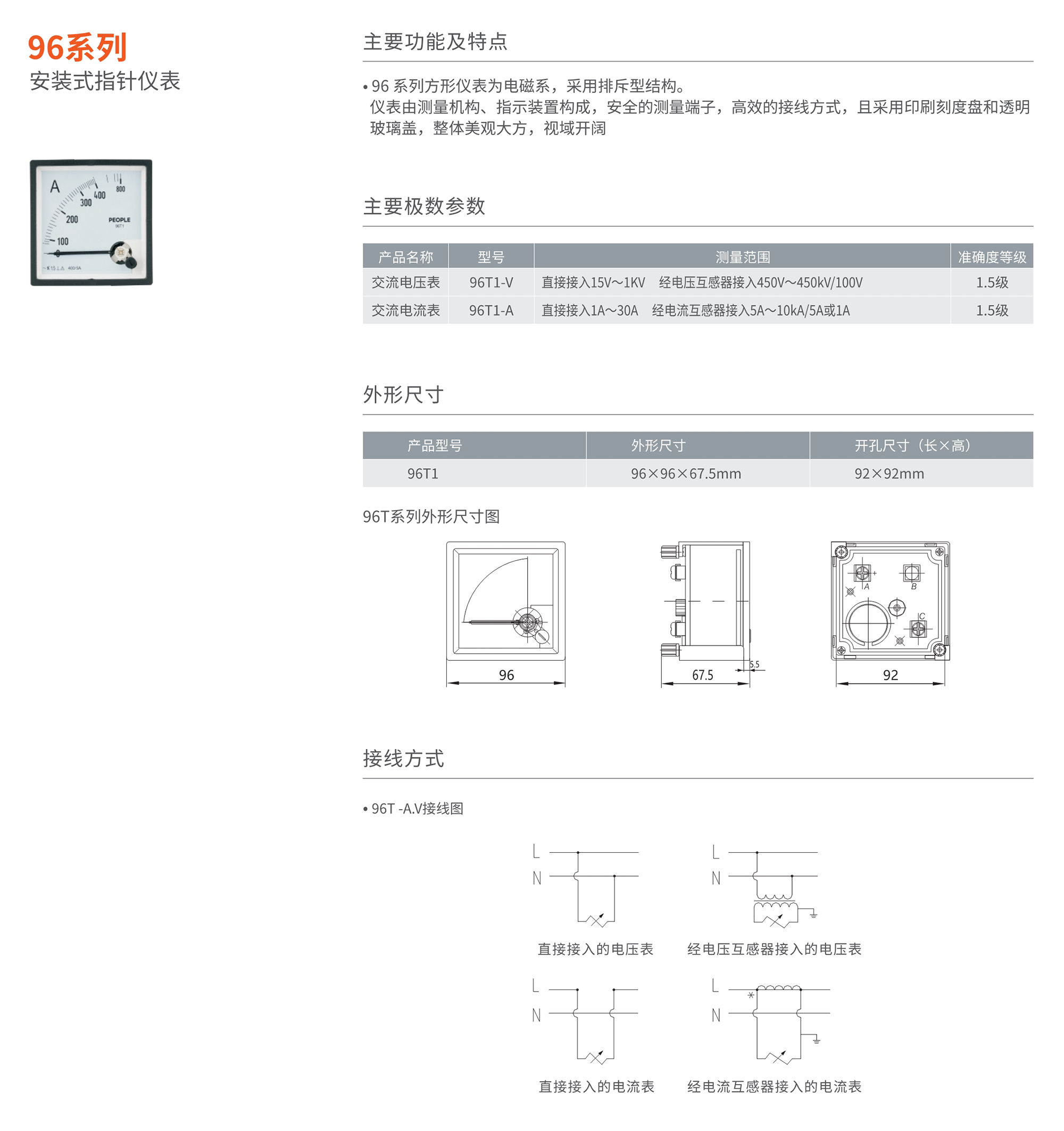 安裝式電工儀表是用途很廣的直接作用模擬指示電測儀表、適用于直流電路和工頻交流電路測量: 電壓、電流、頻率、功率因素參數(shù),安裝板表固有的優(yōu)點(diǎn)是可以顯示被測電量的變化趨勢,除單獨(dú)使用外,主要是為了各高、低電壓開關(guān)柜,電源柜、控制柜以及各種電控裝置、做儀表盤配套使用,產(chǎn)品各項(xiàng)指標(biāo)符合GB/T7676-1998國家標(biāo)準(zhǔn)技術(shù)要求。塑料外殼、大窗口、廣視角,造型簡潔明快、美觀大方。