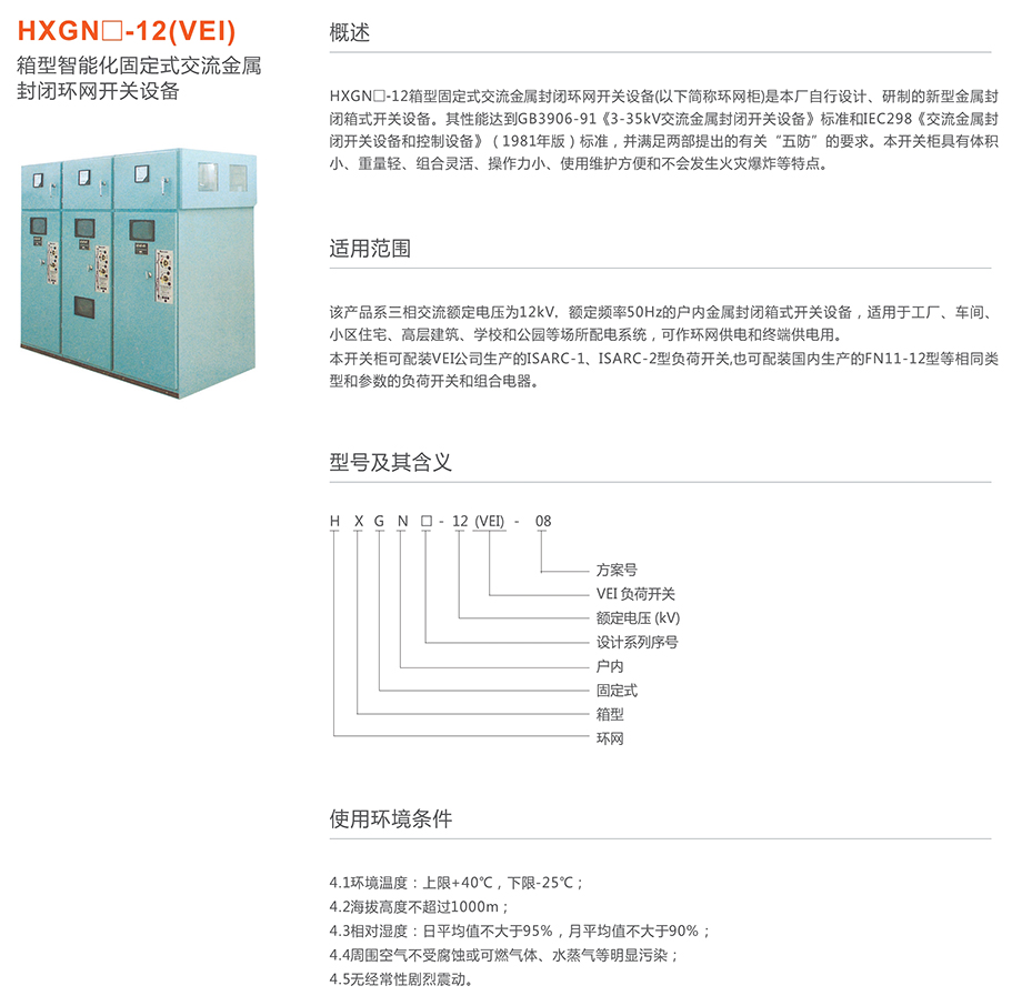 HXGN□-12(VEI)箱型固定式交流金屬封閉環(huán)網(wǎng)開關(guān)設(shè)備