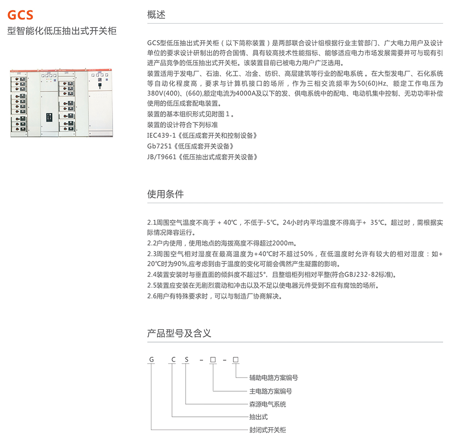 GCS型低壓抽出式開關(guān)柜(以下簡稱裝置)是兩部聯(lián)合設(shè)計(jì)組根據(jù)行業(yè)主管部門、廣大電力用戶及設(shè)計(jì)單位的要求設(shè)計(jì)研制出的符合國情、具有較高技術(shù)性能指標(biāo)、能夠適應(yīng)電力市場發(fā)展需要并可與現(xiàn)有引進(jìn)產(chǎn)品競爭的低壓抽出式開關(guān)柜。該裝置目前已被電力用戶廣泛選用。