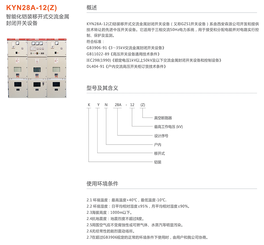 KYN28A-12(Z)鎧裝移開式交流金屬封閉開關(guān)設(shè)備(又稱GZS1開關(guān)設(shè)備)系由西安森源公司開發(fā)和提供技術(shù)轉(zhuǎn)讓的先進(jìn)中壓開關(guān)設(shè)備。它適用于三相交流50Hz電力系統(tǒng),用于接受和分配電能并對(duì)電路實(shí)行控制、保護(hù)及監(jiān)測(cè)。