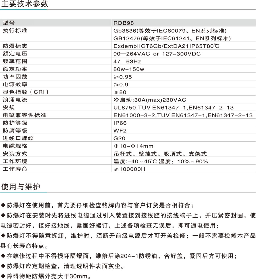 > RDB98-9610防爆免維護節(jié)能燈(LED)