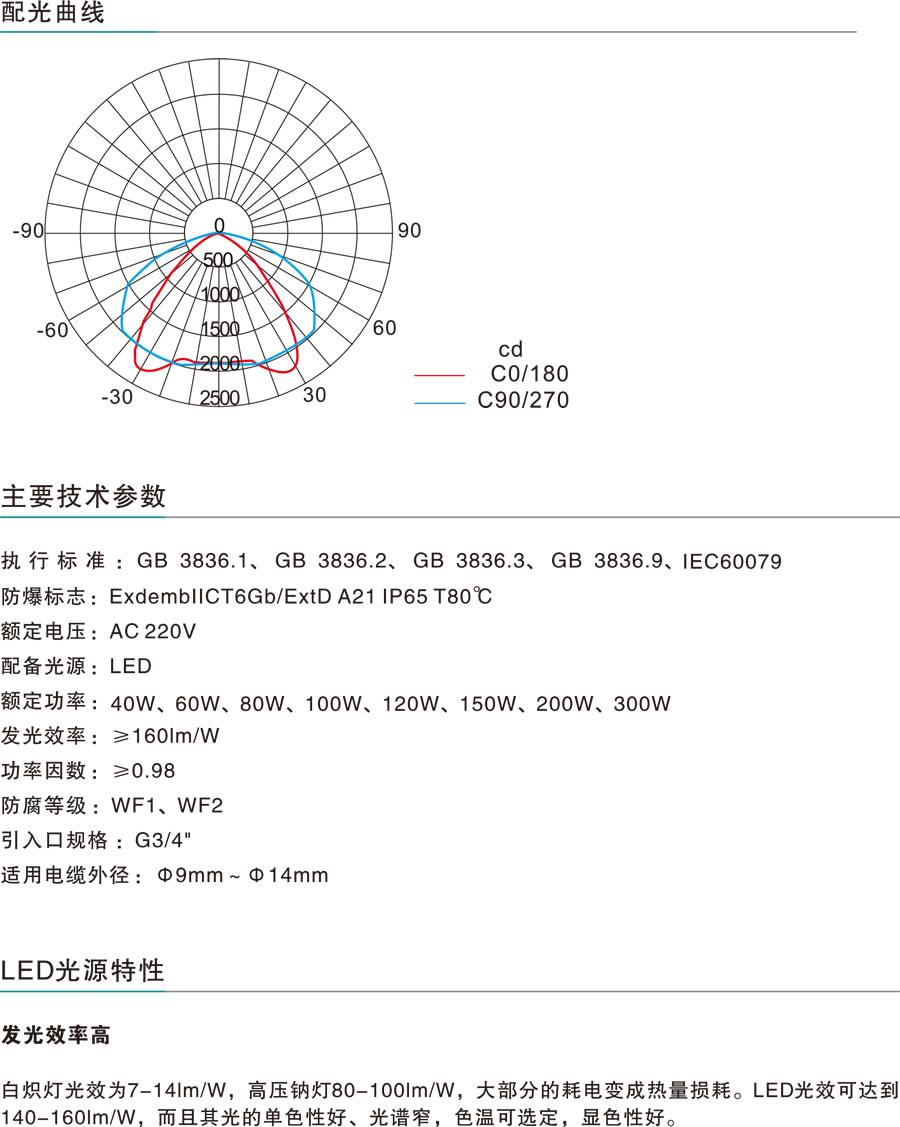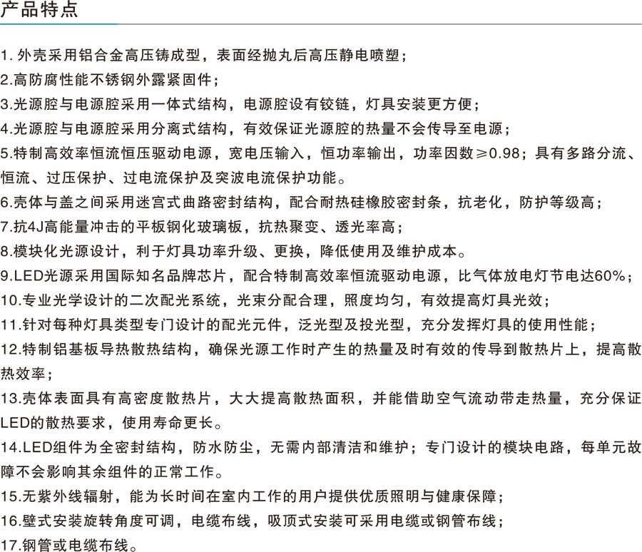 適用于ⅡA、ⅡB、ⅡC類(lèi)含有爆炸性氣體環(huán)境,溫度組別為T(mén)1-T6的1區(qū)、2區(qū)室內(nèi)外危險(xiǎn)場(chǎng)氣或21區(qū)、22區(qū)爆炸性場(chǎng)所室內(nèi)外照明。