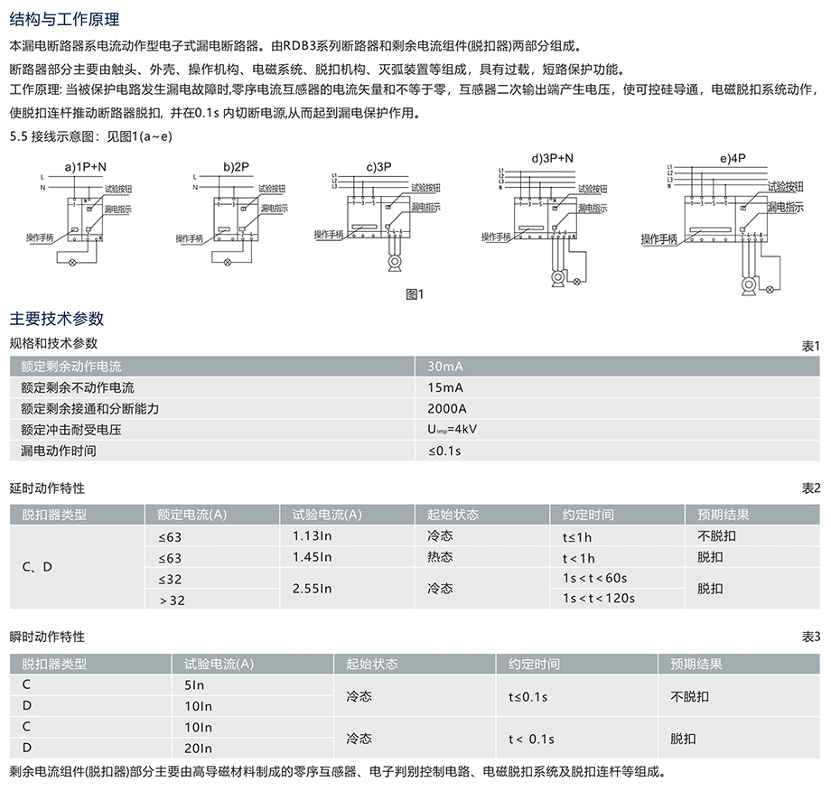 RDB3LE系列剩余電流動(dòng)作斷路器(簡(jiǎn)稱漏電斷路器)適用于交流50Hz、額定電壓AC230/400V, 額定電流至63A的線路中,作為負(fù)載線路的漏電(觸電)、過載和短路保護(hù)。也可作為不頻繁 接通、分?jǐn)嗪娃D(zhuǎn)換之用。該系列產(chǎn)品具有分?jǐn)嗄芰Ω?、附件適用性強(qiáng)、體積小、重量輕、外 形美觀和使用方便等優(yōu)點(diǎn)。 產(chǎn)品符合:GB/T 16917.1、GB/T 16917.22 標(biāo)準(zhǔn)。