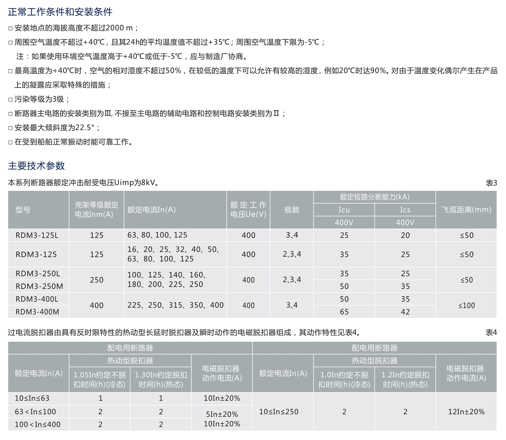 RDM3系列塑料外殼式斷路器(以下簡稱斷路器),是本公司根據(jù)市場需求設(shè)計(jì)開發(fā)的新型斷路器。該斷路器具有體積小、分?jǐn)嗄芰Ω?、飛弧短、抗震動的特點(diǎn),是陸地及船舶使用的理想產(chǎn)產(chǎn)品。斷路器額定絕緣電壓800V,適用于交流50Hz/60Hz,額定工作電壓至AC400V,額定電流至400A的配電網(wǎng)絡(luò)中,用來分配電能和保護(hù)線路及電源設(shè)備免受過載、短路和欠電壓等故障的損壞。亦能作線路不頻繁轉(zhuǎn)換和電動機(jī)不頻繁啟動及過載、短路保護(hù)。斷路器可垂直安裝(即豎裝),亦可水平安裝(即橫裝)。
