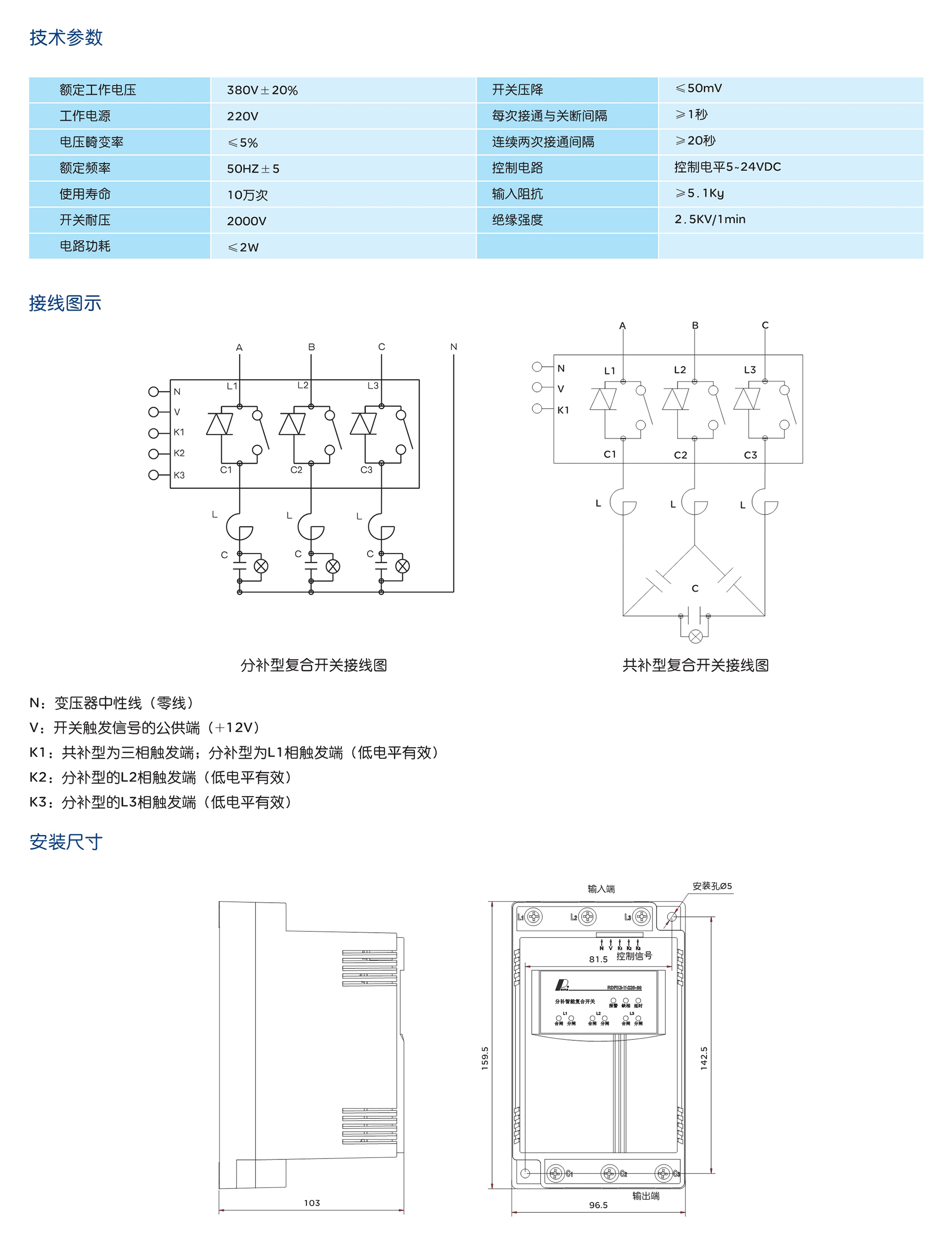 RDFK3系列智能復(fù)合開關(guān)有共補和分補兩種,共補開關(guān)用于投切三相電容,采用 接法;分補