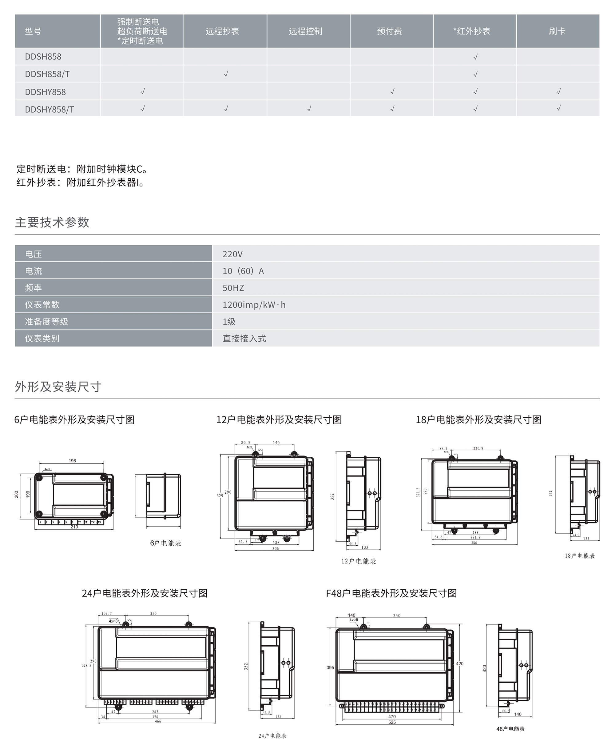 DDSH858系列多用戶電能表是一種全電子式智能化多用戶電能表。本產(chǎn)品采用模塊化的結構型式,以單片機為核心,每戶配備獨立的計量單元,實現(xiàn)分戶計量、集中顯示的功能,可進行單相/三相/單戶雙回路的混合計量。
