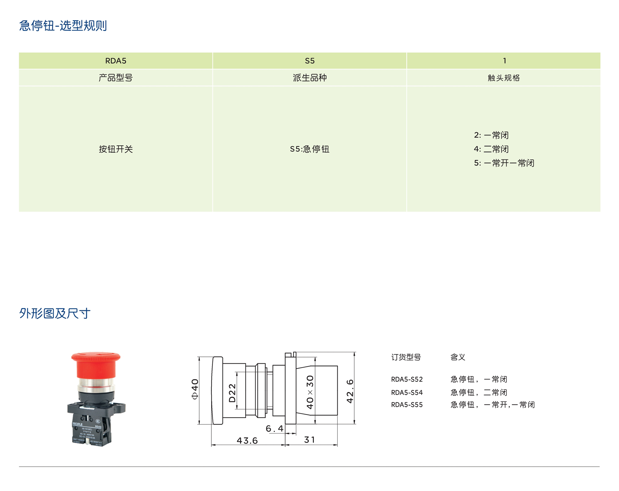 人民電器RDA5系列按鈕開關(guān)