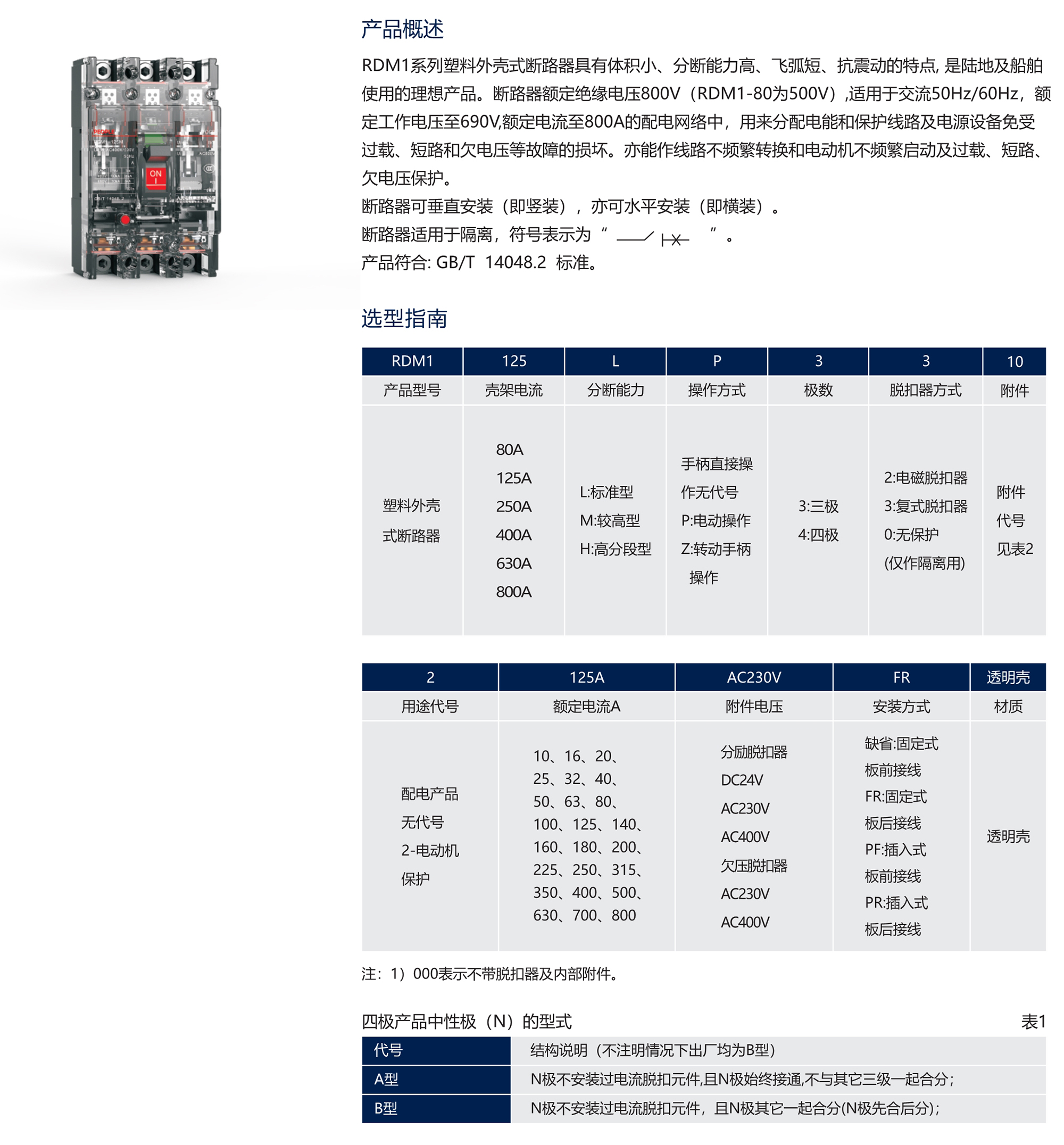 RDM1系列塑料外殼式斷路器具有體積小、分斷能力高、飛弧短、抗震動的特點, 是陸地及船舶使用的理想產品。斷路器額定絕緣電壓800V(RDM1-80為500V),適用于交流50Hz/60Hz,額定工作電壓至690V,額定電流至800A的配電網(wǎng)絡中,用來分配電能和保護線路及電源設備免受過載、短路和欠電壓等故障的損壞。亦能作線路不頻繁轉換和電動機不頻繁啟動及過載、短路、欠電壓保護。
